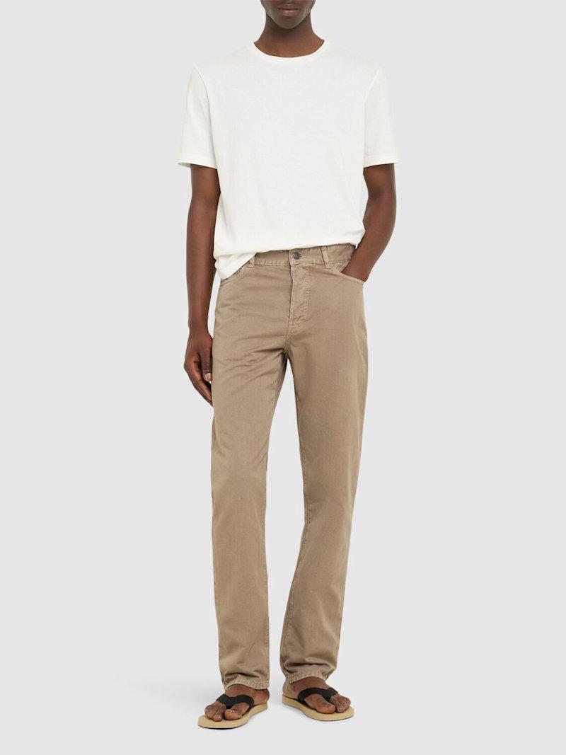 Carlisle棉质牛仔裤 - 灰褐色 - 男士 - The Row - 正面纽扣和隐藏式拉链开合.
