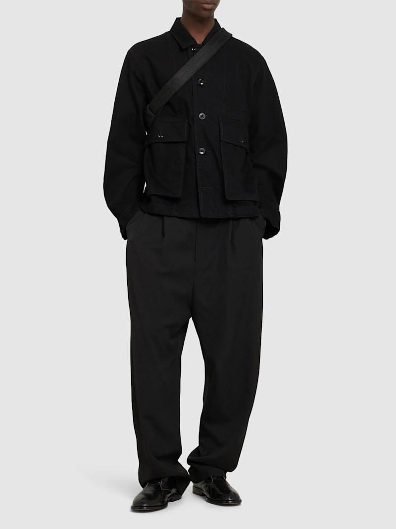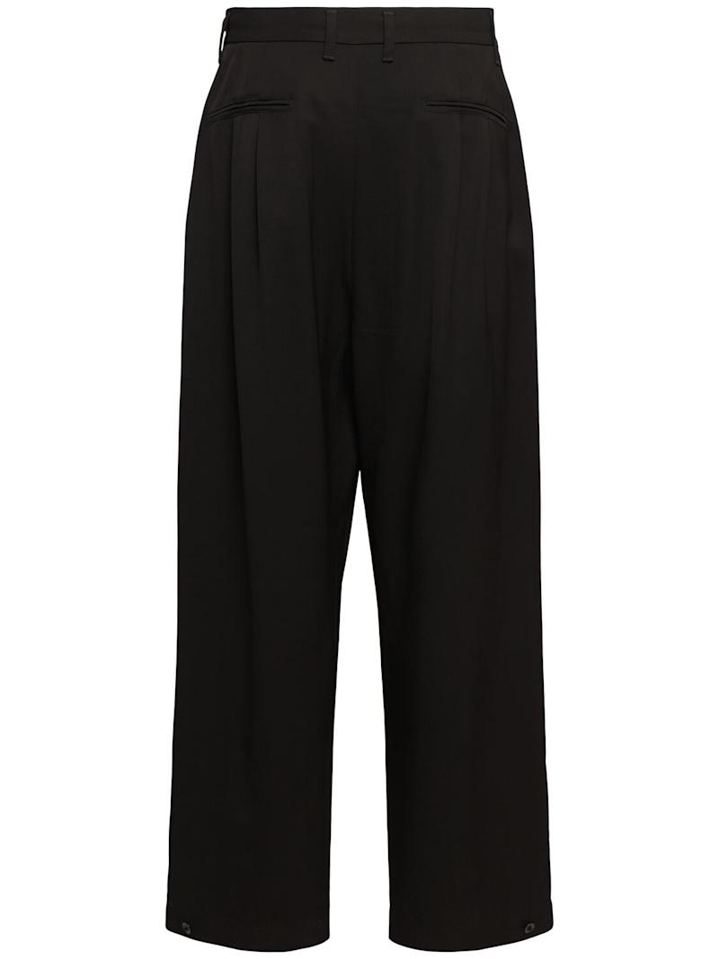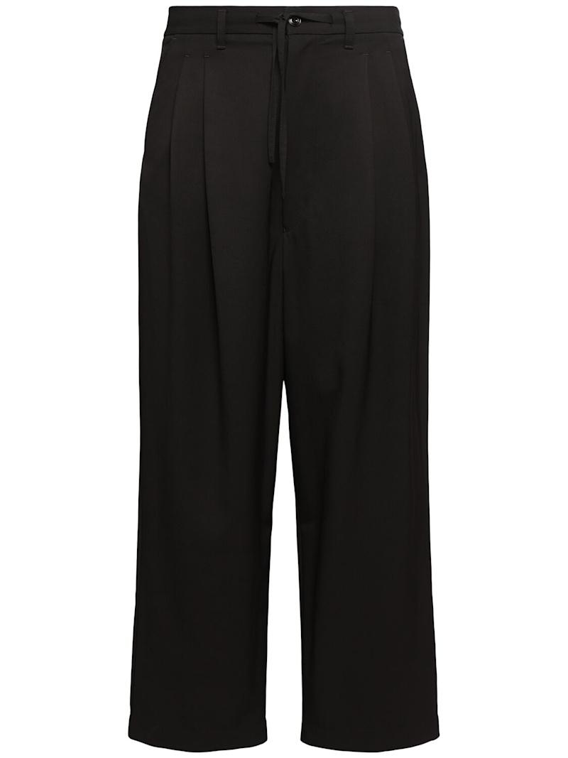 打褶抽绳裤子 - 黑色 - 男士 - Lemaire - 正面纽扣和隐藏式拉链开合.
