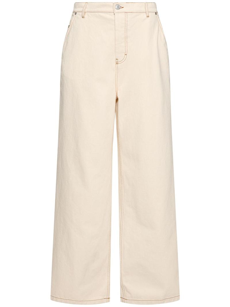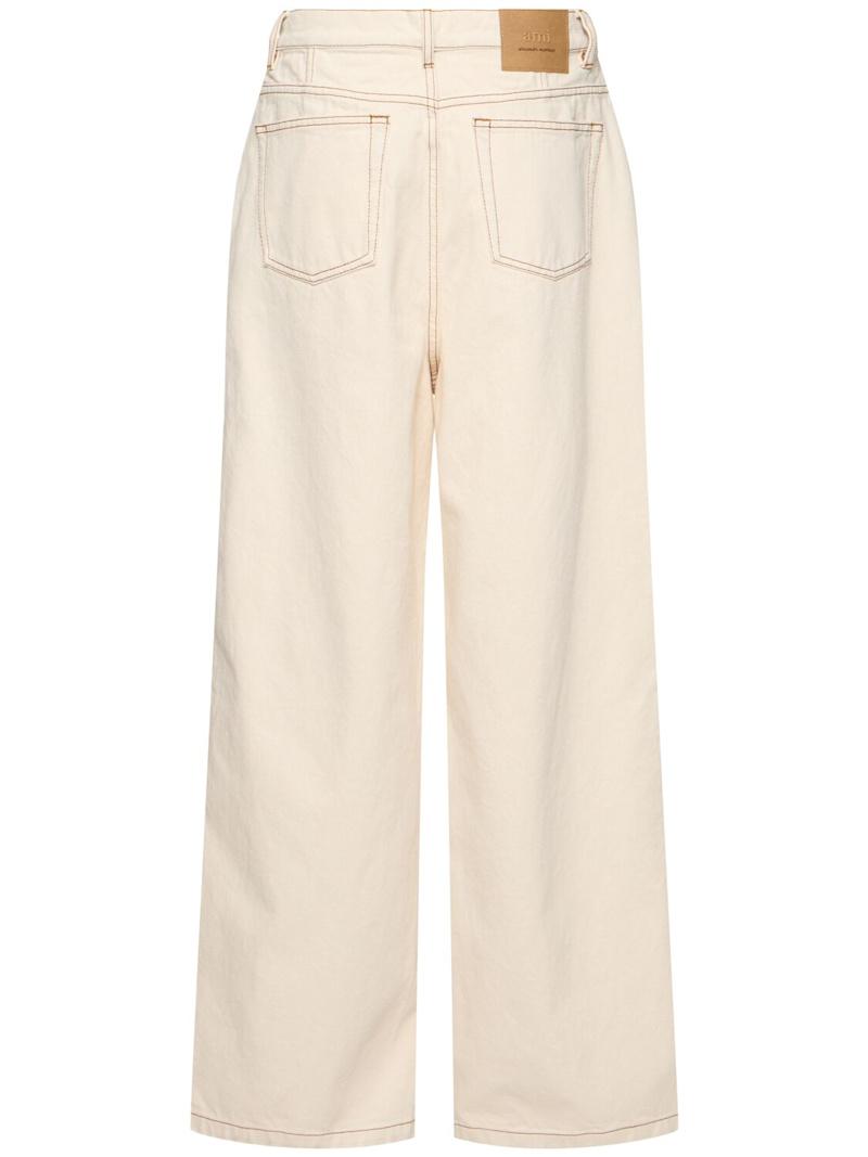 Wide版型棉质牛仔裤 - 奶白色 - 男士 - AMI Paris - 正面隐藏式纽扣开合.