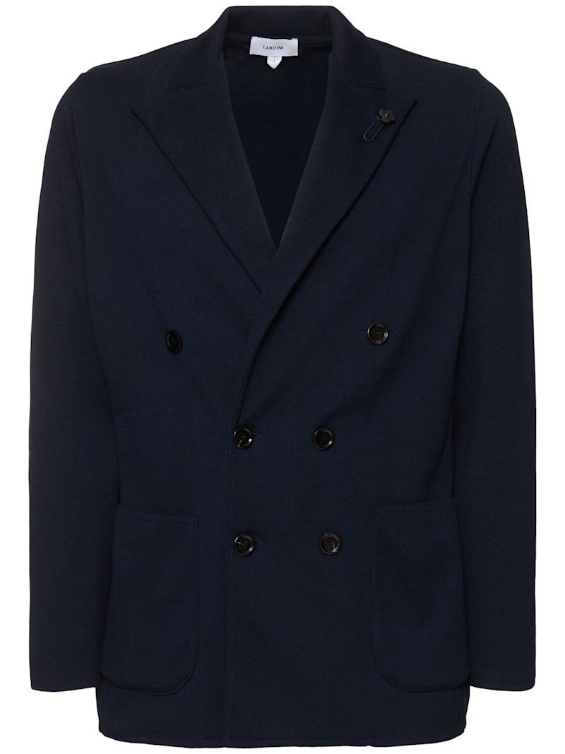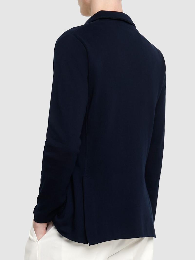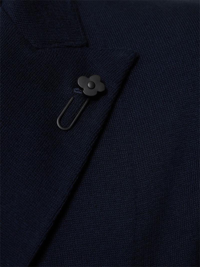 双排扣棉质针织西服夹克 - 蓝色 - 男士 - Lardini - 正面纽扣开合.