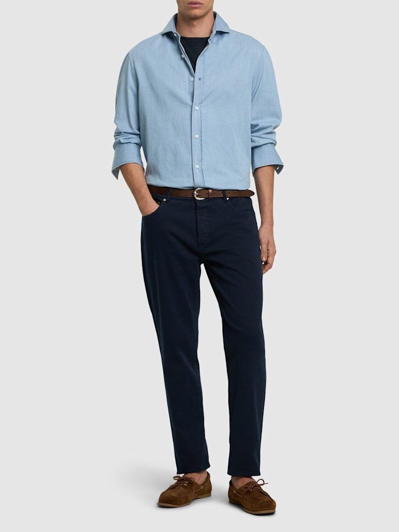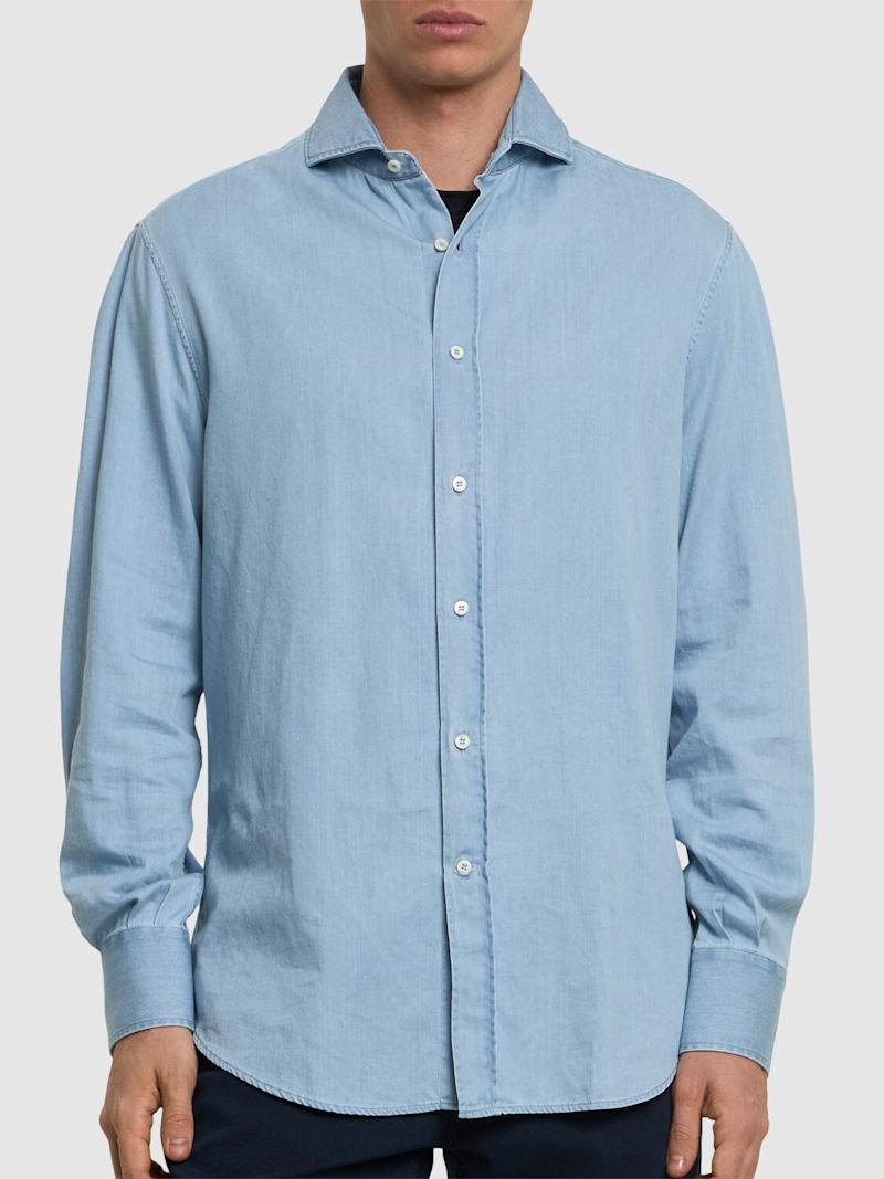 棉质牛仔衬衫 - 牛仔 - 男士 - Brunello Cucinelli - 正面纽扣开合.