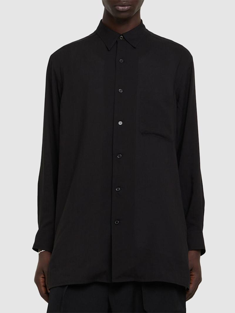 大廓型衬衫 - 黑色 - 男士 - Yohji Yamamoto - 正面纽扣开合.