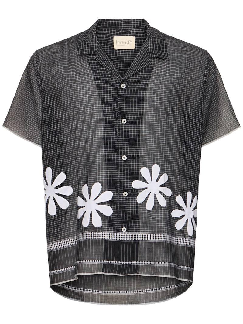 Daisy装饰棉质短袖衬衫 - 黑色 - 男士 - Harago - 正面纽扣开合.