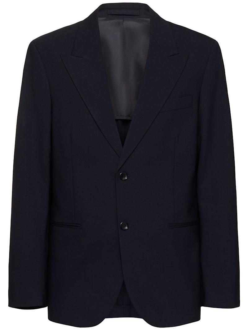 单排扣热带羊毛混纺西服夹克 - 蓝色 - 男士 - Seven Gauge - 正面纽扣开合.