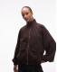 ASOS DESIGN oversized funnel neck zip through interlock sweatshirt with pockets in chocolate