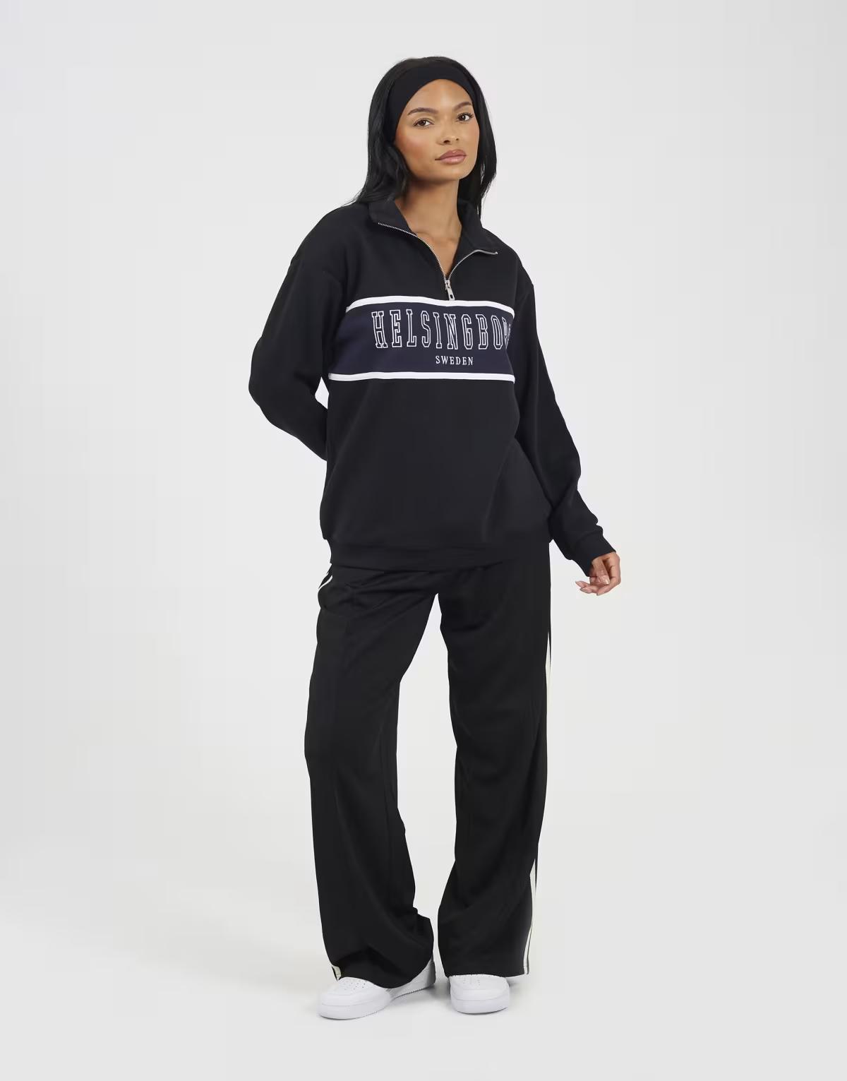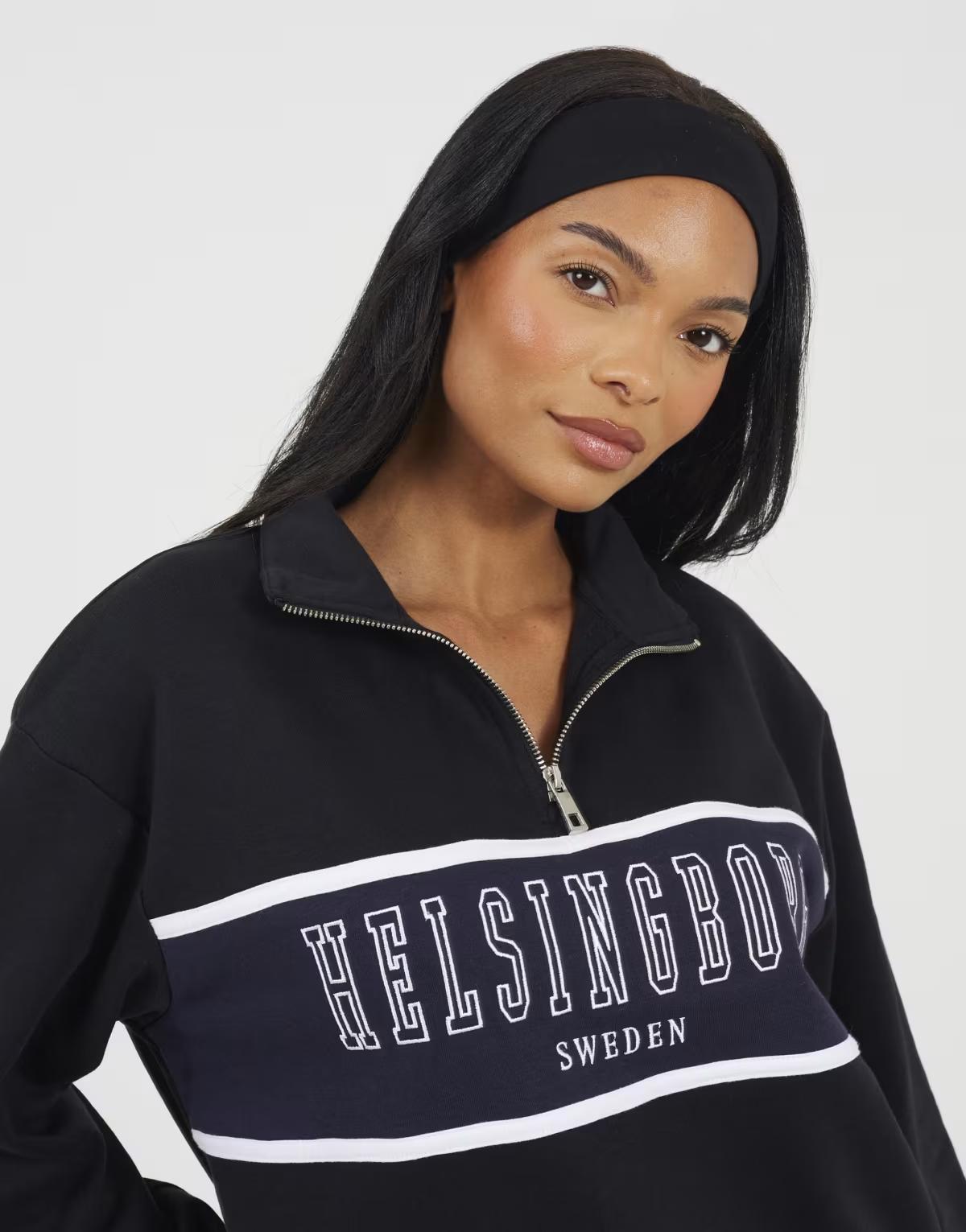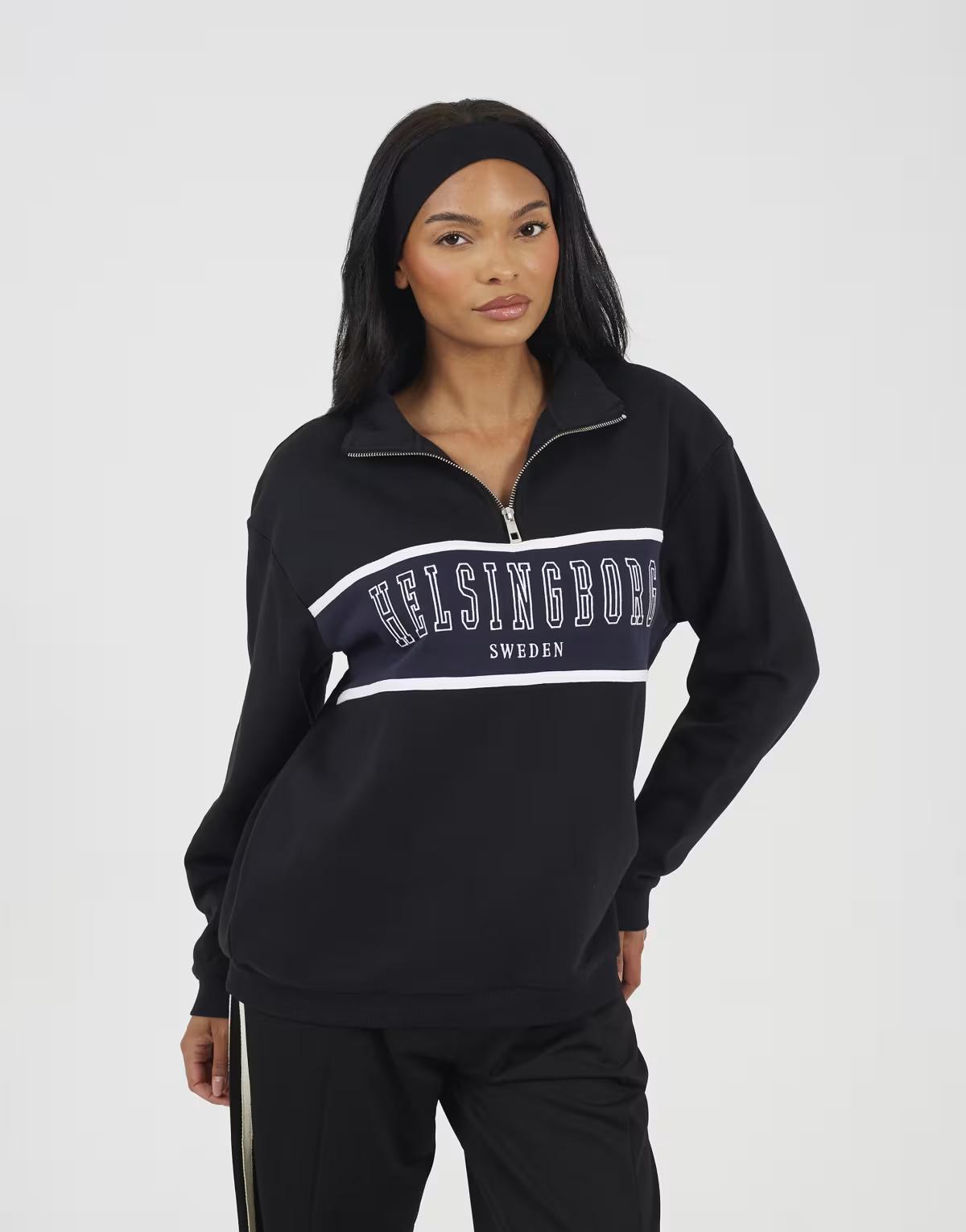 Brave Soul Funnel neck quarter zip sweatshirt with embroidery in black