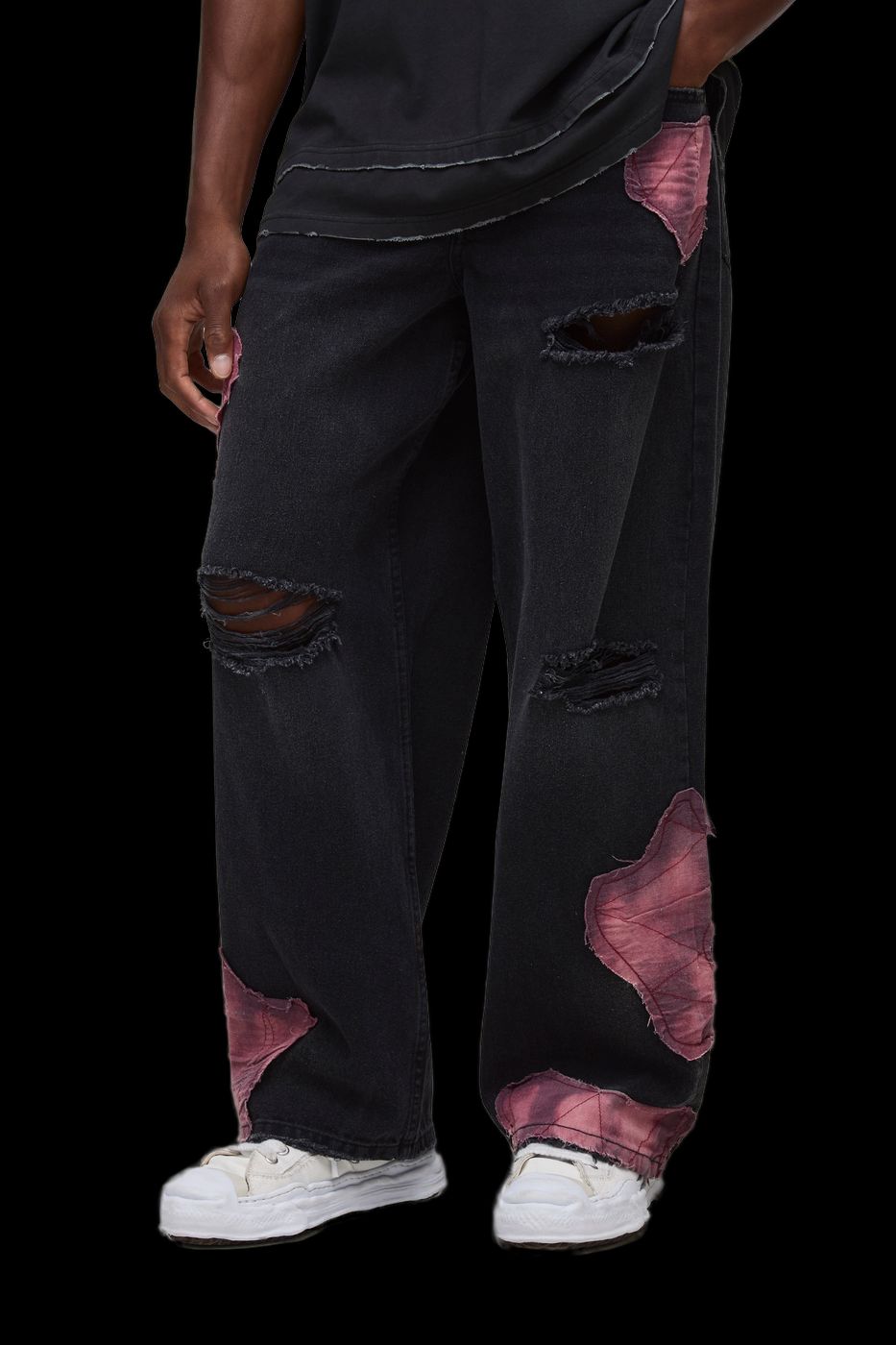 Style: Ripped JeansDesign: PlainFabric: DenimDetail: PatchworkLength: Regular Details & Care 100% Cotton. Model is 6'1 & wears UK size M/32