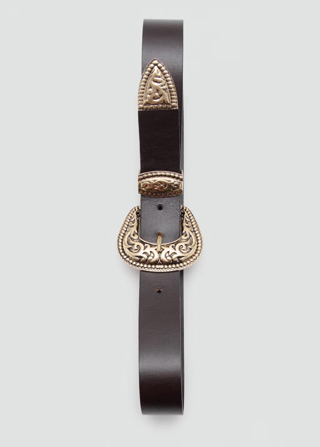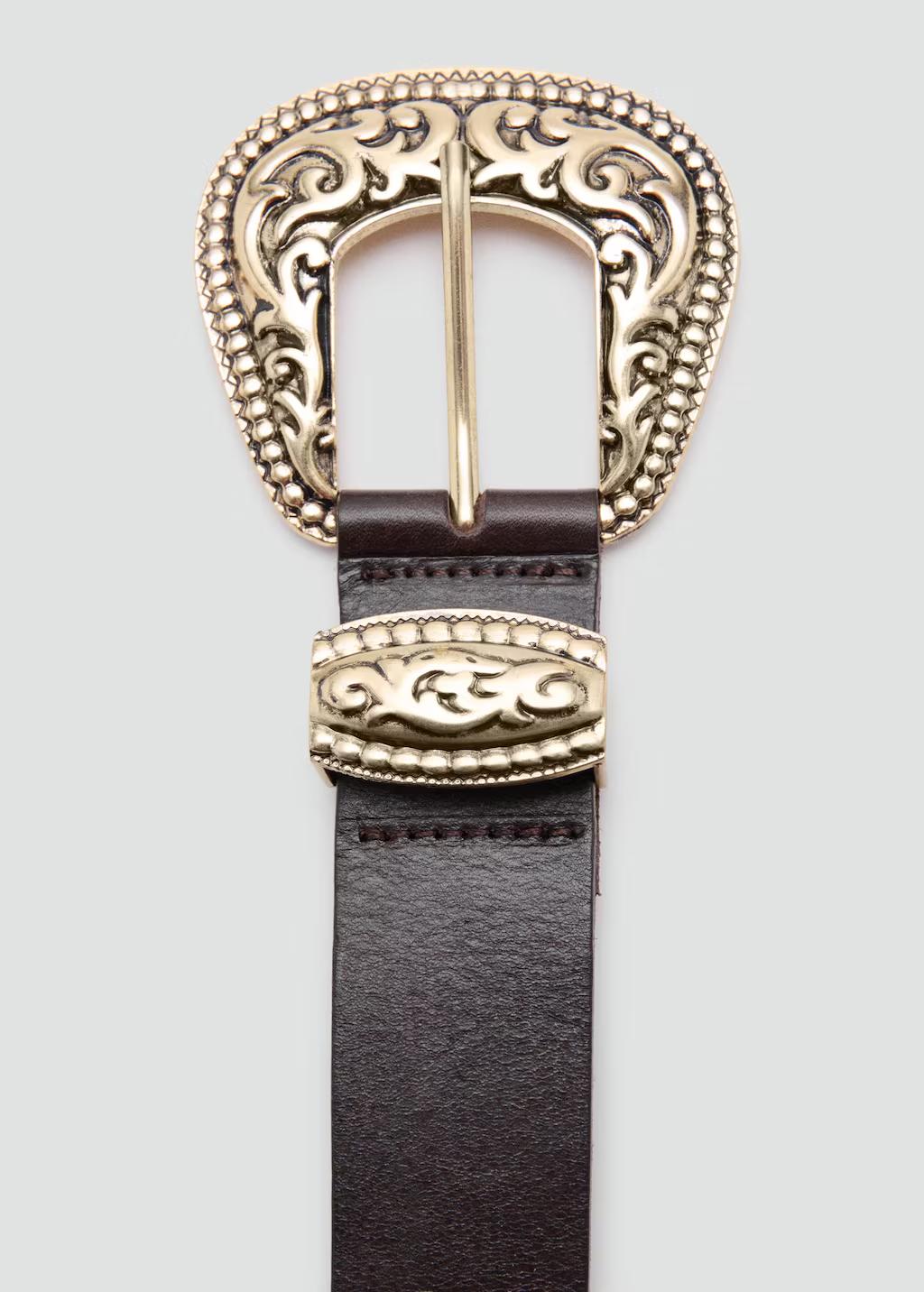 100% piel bovino. Maxi hebilla. Hebilla con detalles grabados. Cierre de hebilla