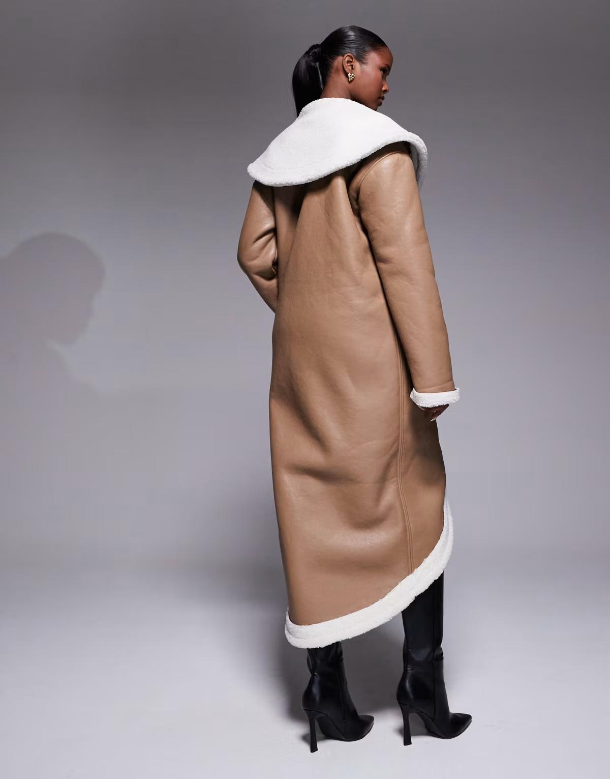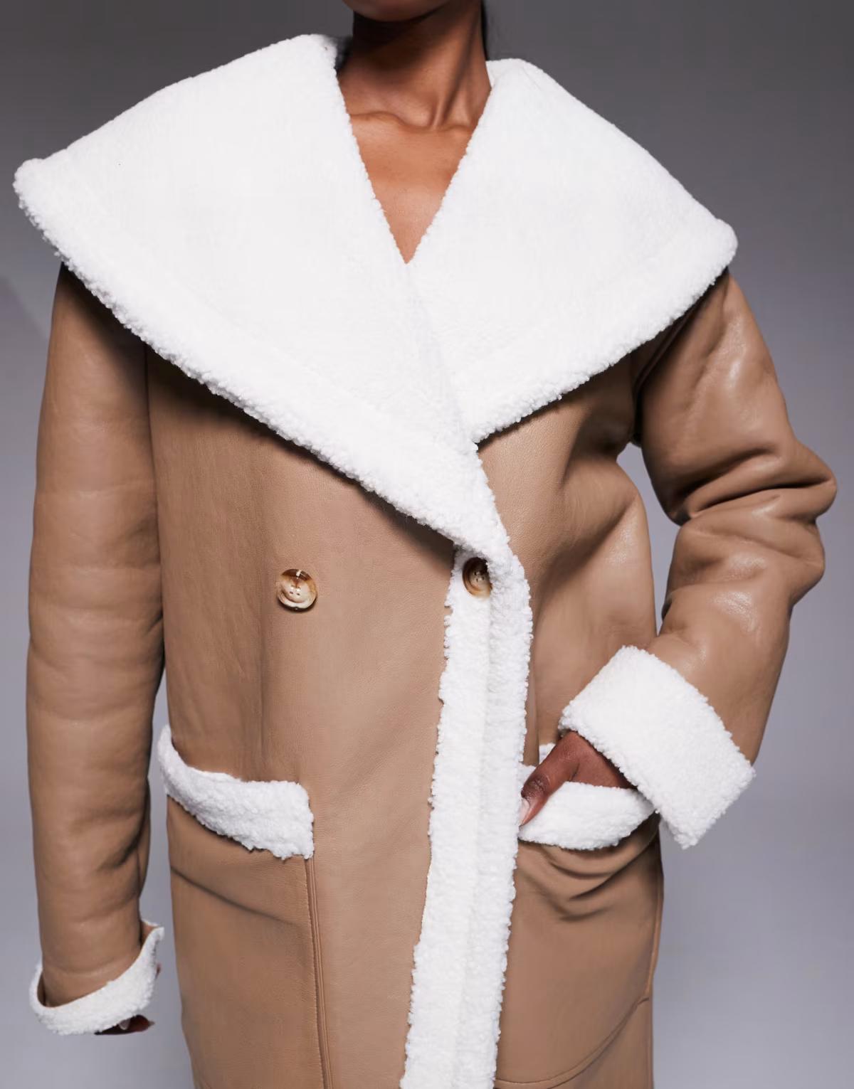 JLUXLABEL Jaida reversible oversized collar teddy coat in beige and white