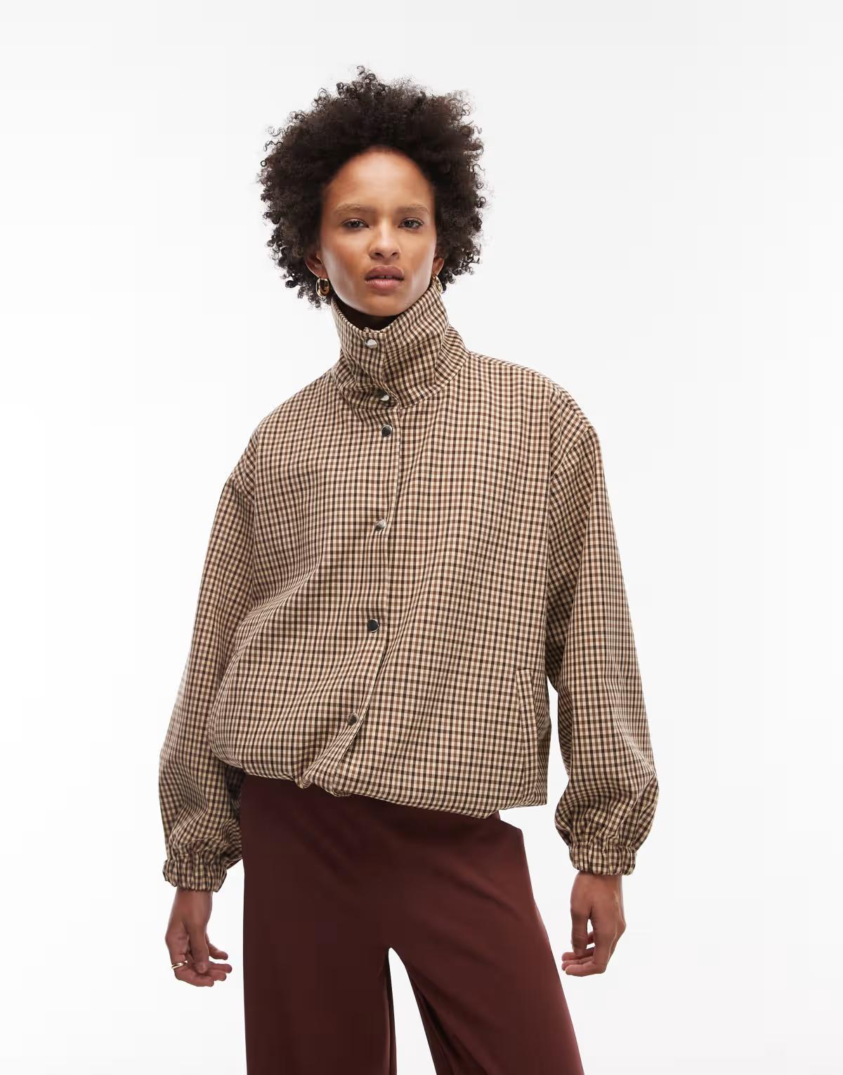 ASOS DESIGN tailored funnel neck jacket in micro check