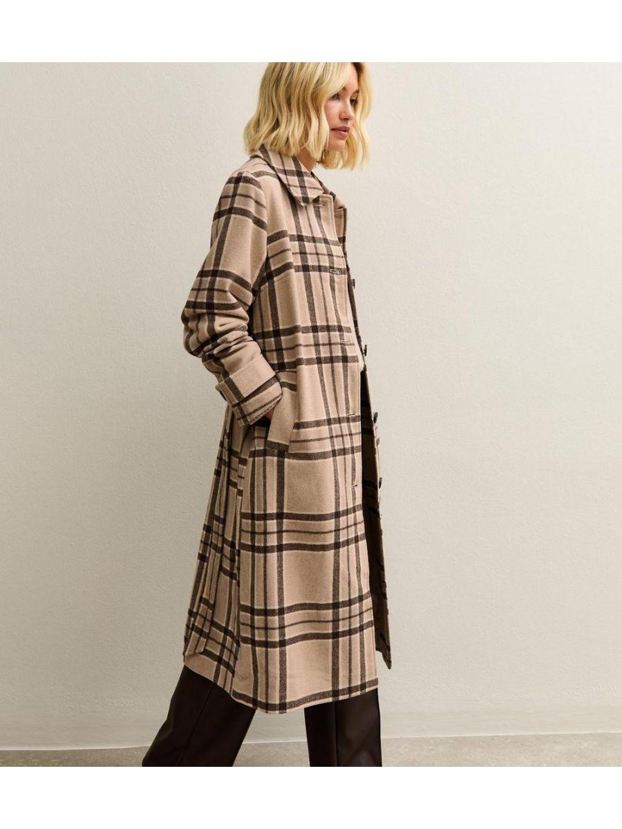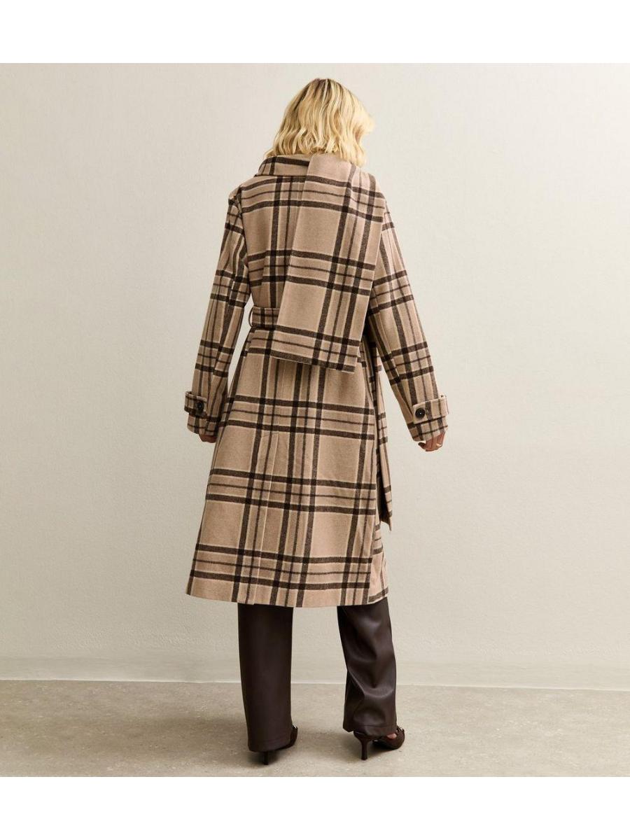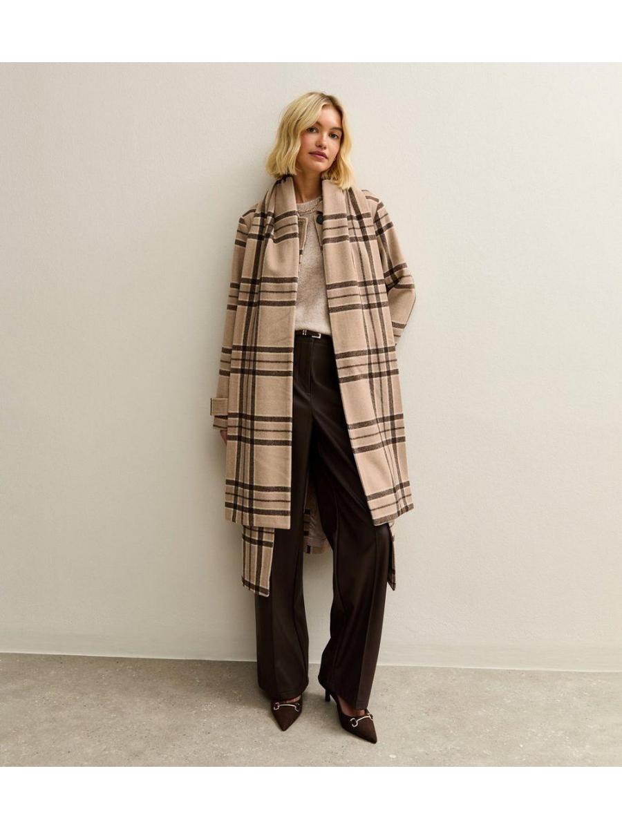 Beige Checked Collared Jacket and Matching Scarf