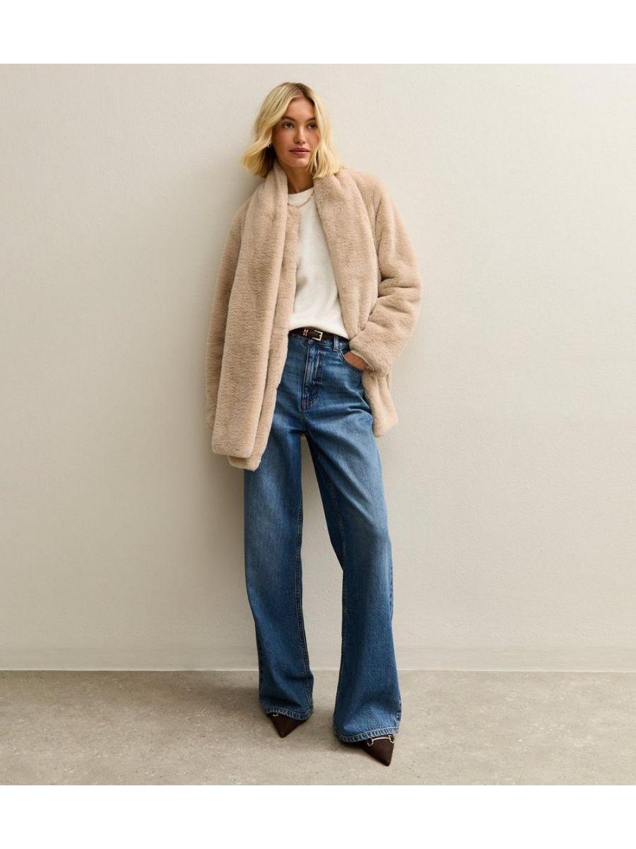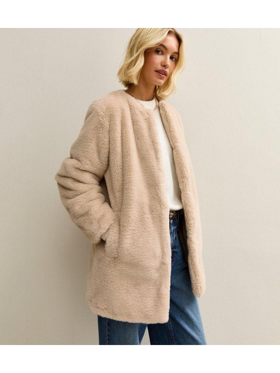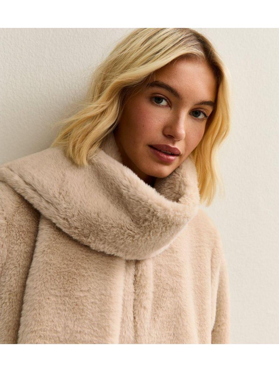 Cream Faux Fur Jacket and Scarf Set