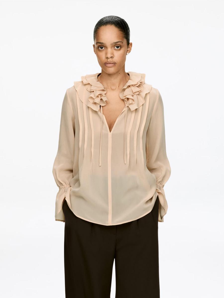 Sheer cupro blouse with a frilled collar and tie bands at the neckline and cuffs.ARKET/Women's clothes/Women's shirts and blouses/Women's blouses