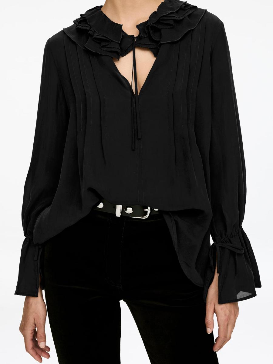 Sheer cupro blouse with a frilled collar and tie bands at the neckline and cuffs.ARKET/Women's clothes/Women's shirts and blouses/Women's blouses