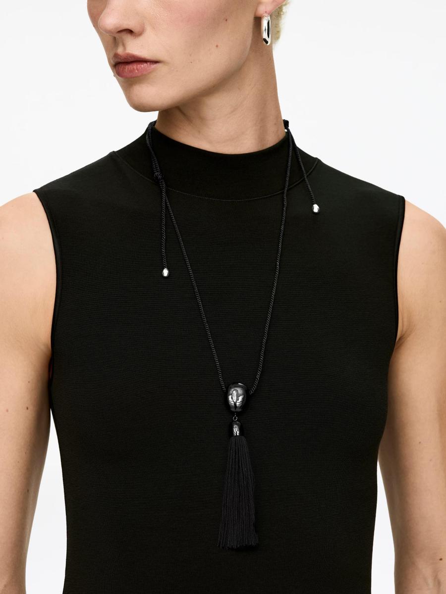 Tassle necklace with a braided cord, embellished with an obsidian bead and silver-plated accents. Features a sliding knot for adjustable length. Total cord length 90 cm.ARKET/Women's clothes/Women's jewellery/Women's necklaces