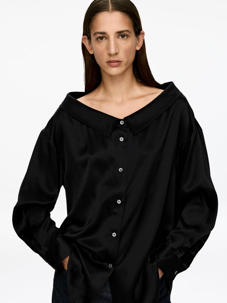Open-neck shirt crafted from mulberry silk, with shaped sleeves, buttoned cuffs, and a loose fit.ARKET/Women's clothes/Women's shirts and blouses/Women's shirts