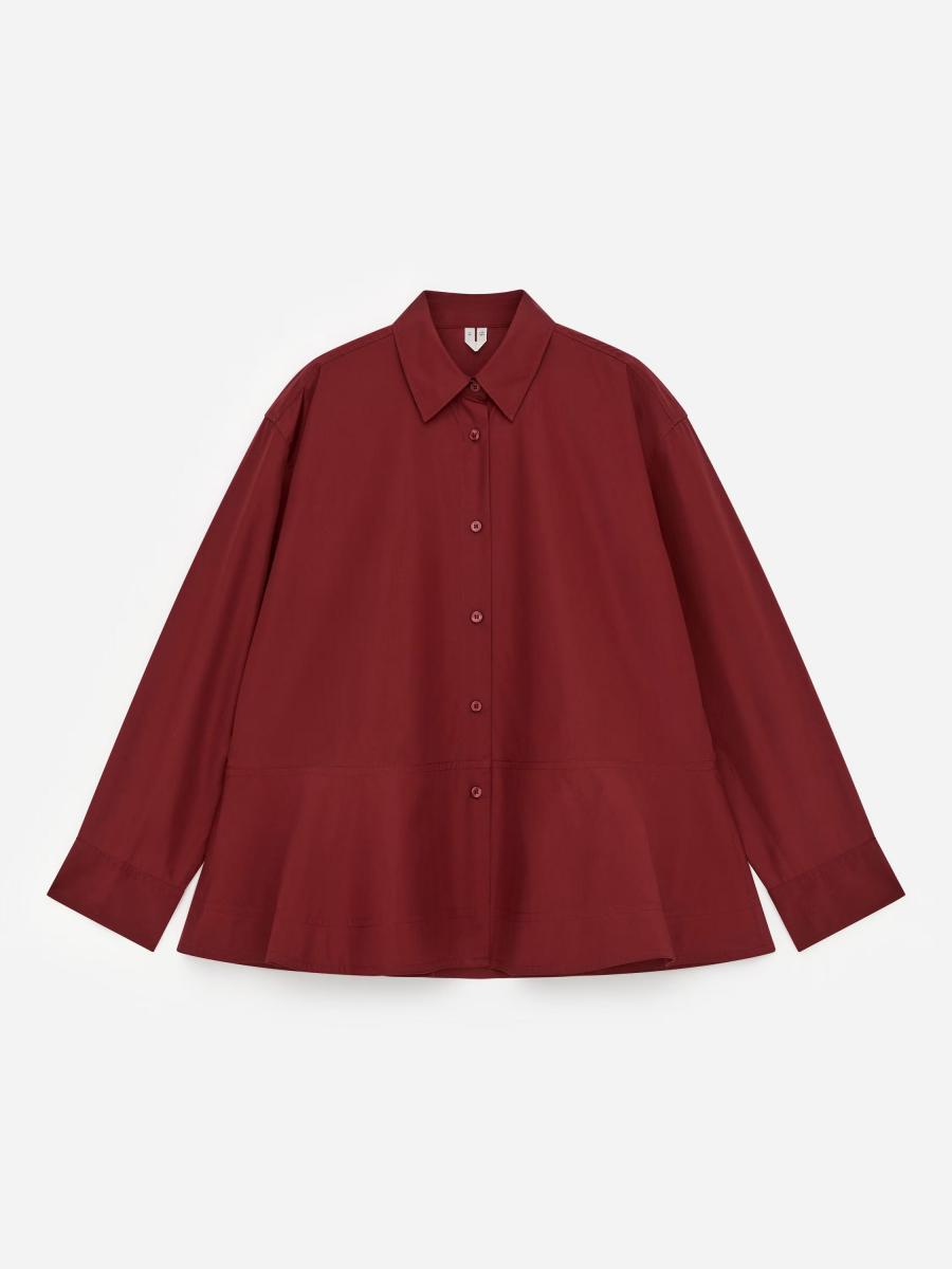 Cotton blouse with a classic shirt collar and button fastening, flaring to a peplum hem.ARKET/Women's clothes/Women's shirts and blouses/Women's blouses