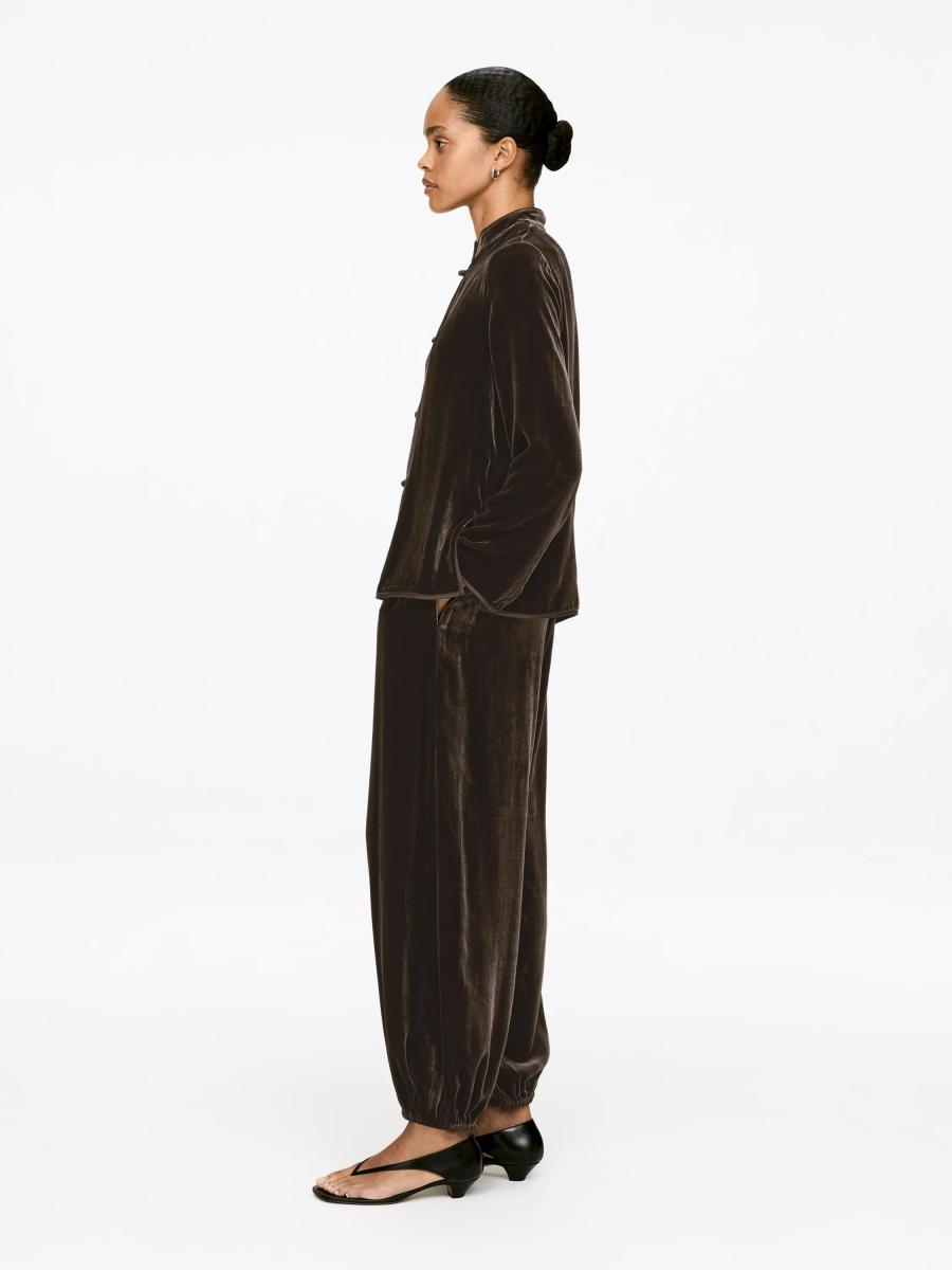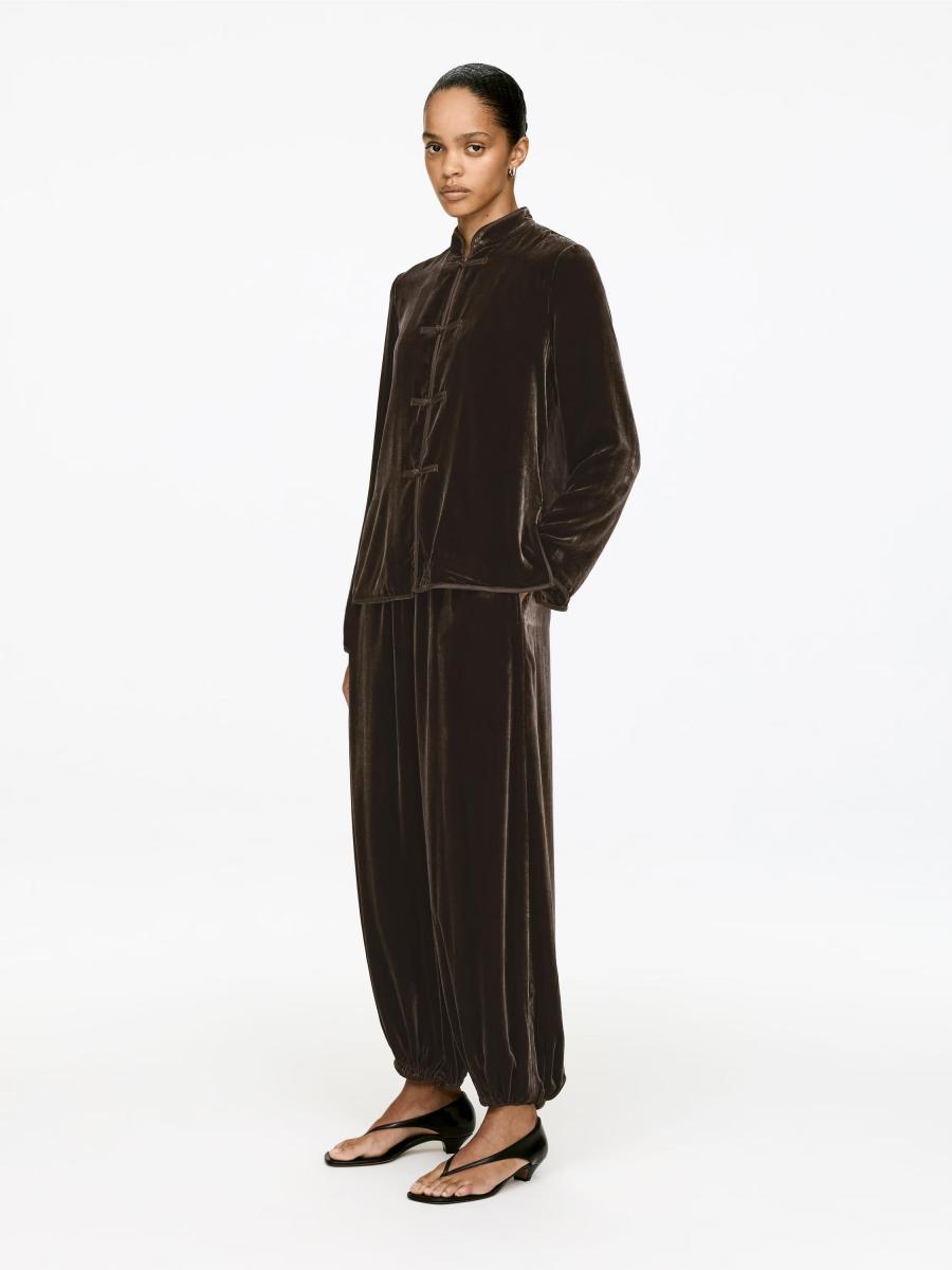 Velvet overshirt crafted from a viscose and silk blend. Features velvet strap fastenings with knots.ARKET/Women's clothes/Women's shirts and blouses/Women's shirts