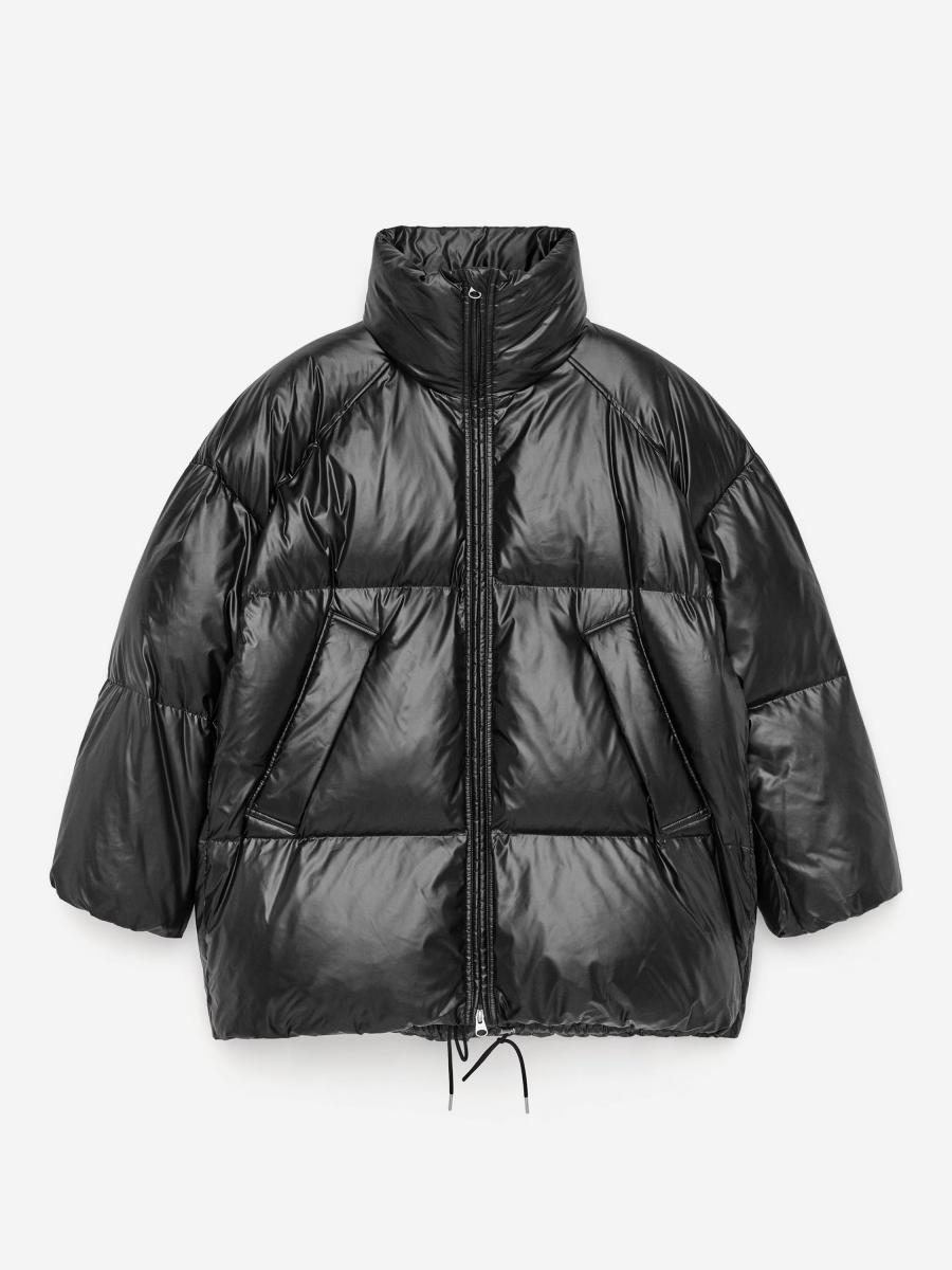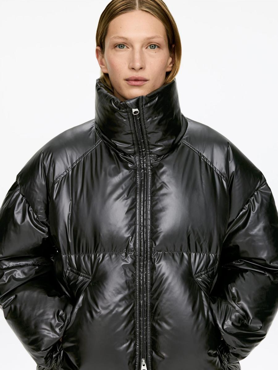 Puffer jacket with a shiny finish, filled with a blend of down and feathers. Features a stand collar, zip fastening and welt pockets with zip closures. Drawstring with metal stopper at the hem. The Upcycled Down products are filled with recycled down and feathers sourced from Re:Down®. These materials, collected from used textiles, are washed and sterilised at high temperatures without the use of chemicals.ARKET/
