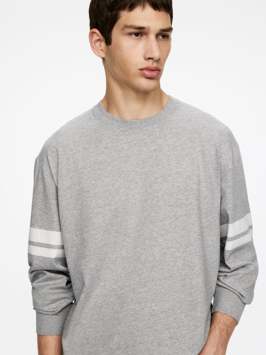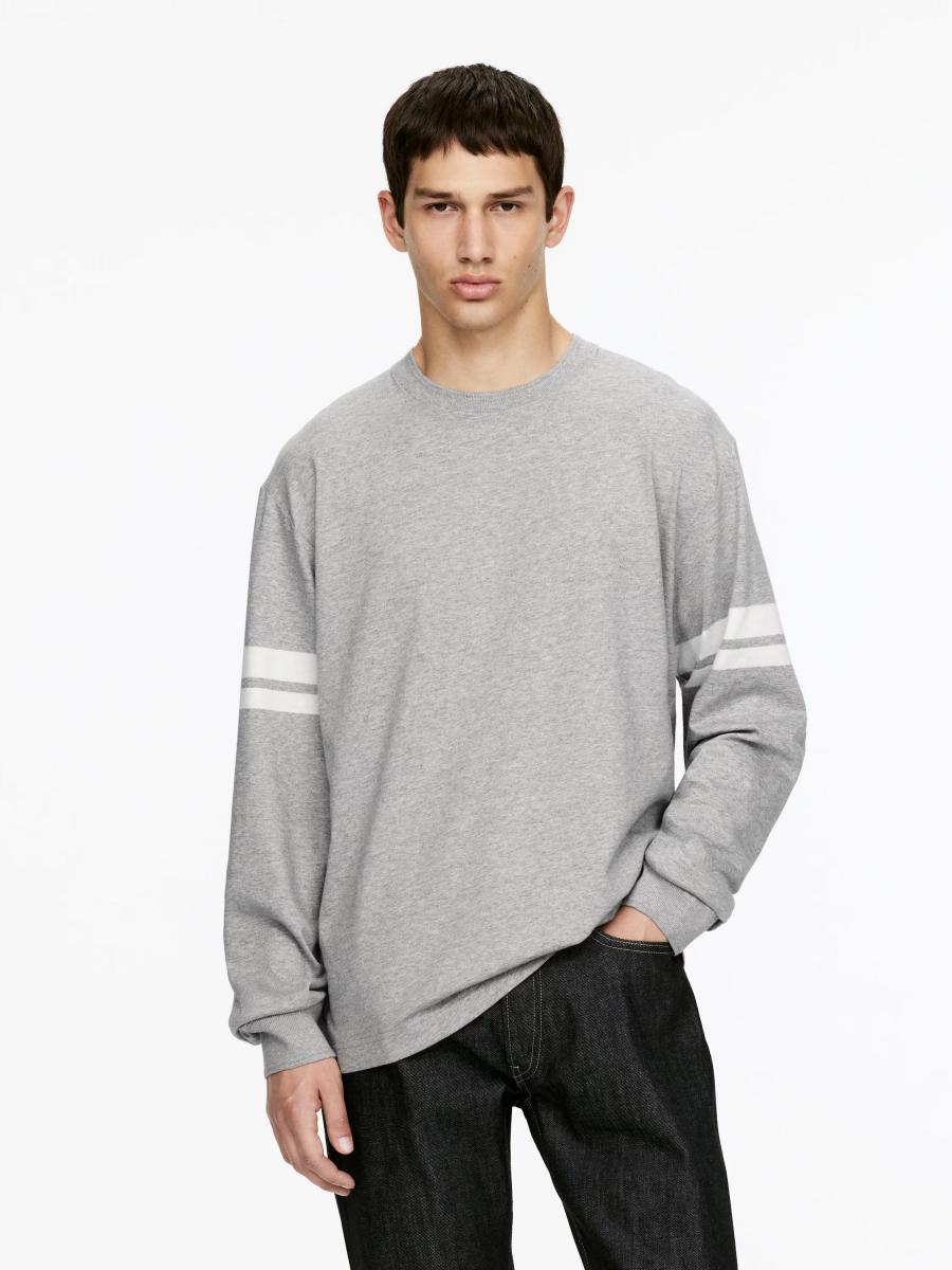 Long-sleeve T-shirt cut for a regular fit. A crewneck style with ribbed trimmings at neckline and cuffs. Slits at side seams. Yarn-dyed stripes at sleeves.ARKET/Men's clothes/Men's T-shirts/Men's long-sleeve T-shirts