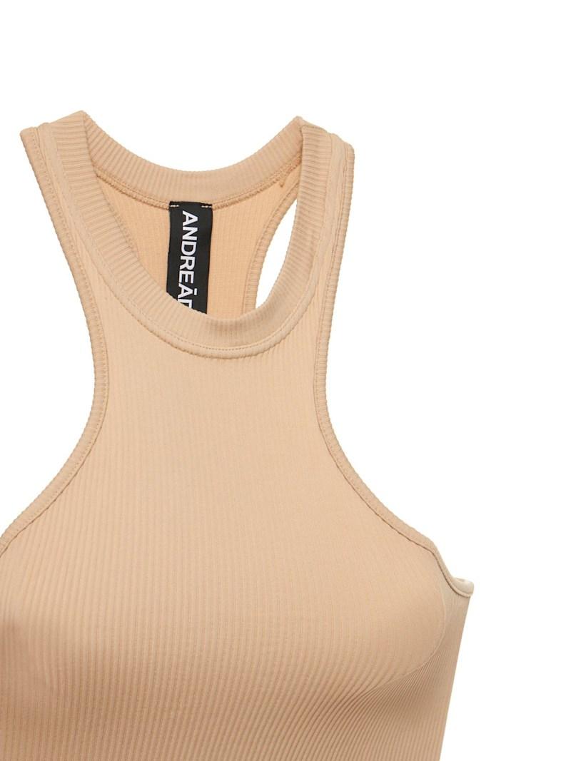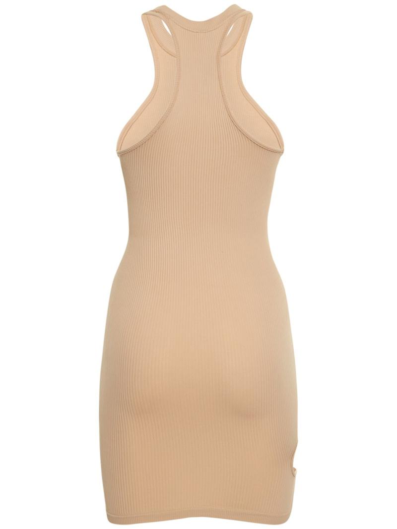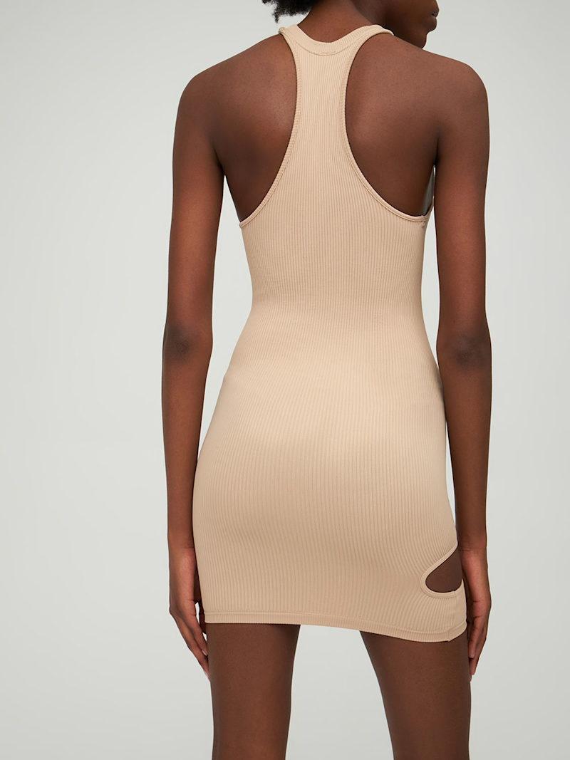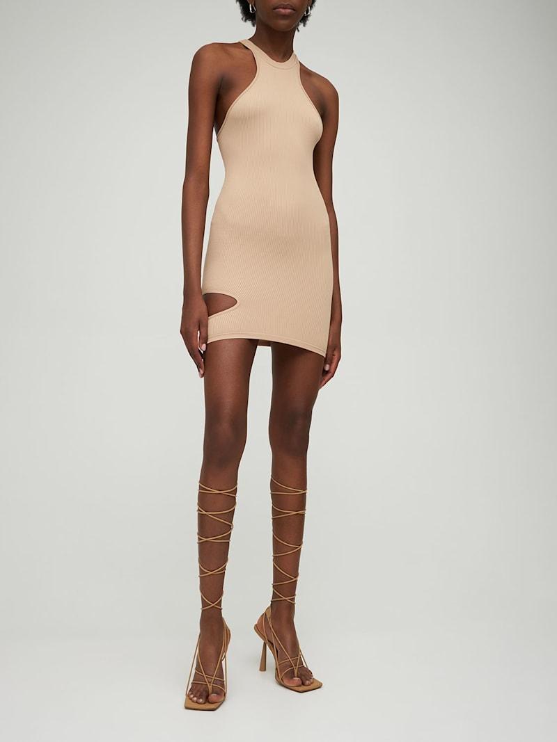 罗纹弹力平纹针织镂空迷你连衣裙 - 裸色 - 女士 - Andreadamo - 镂空细节.