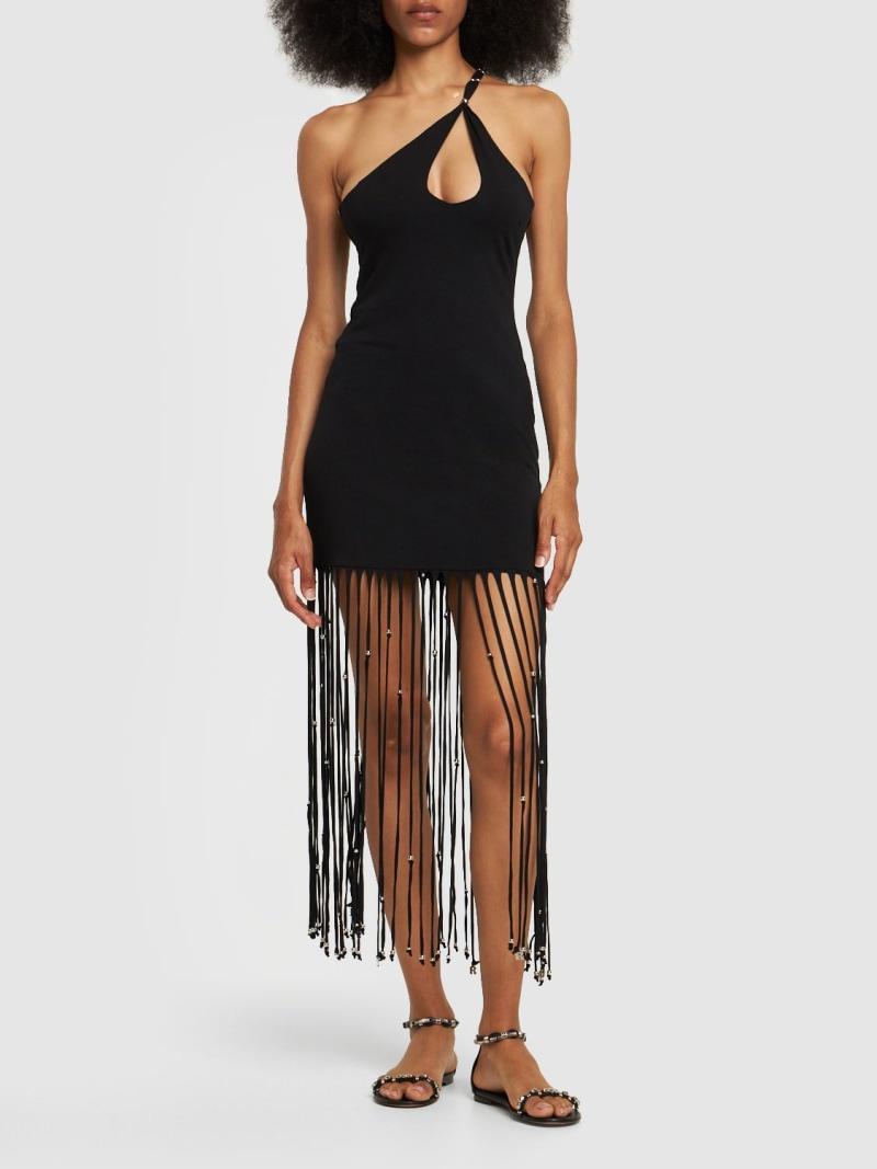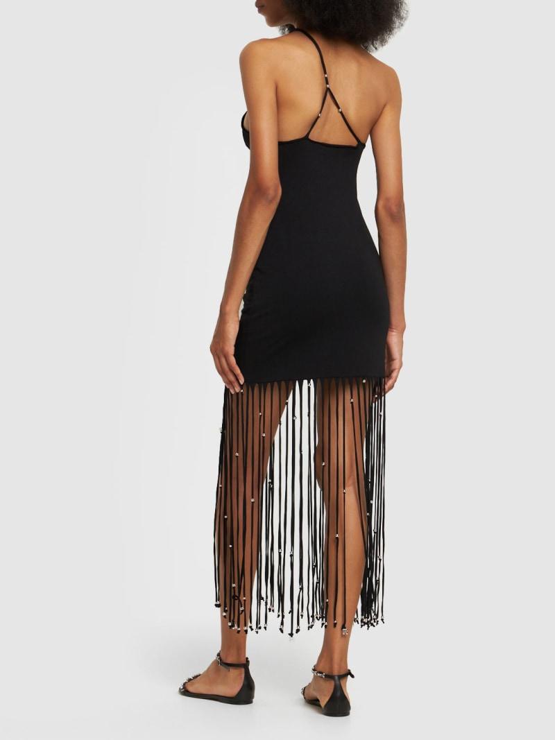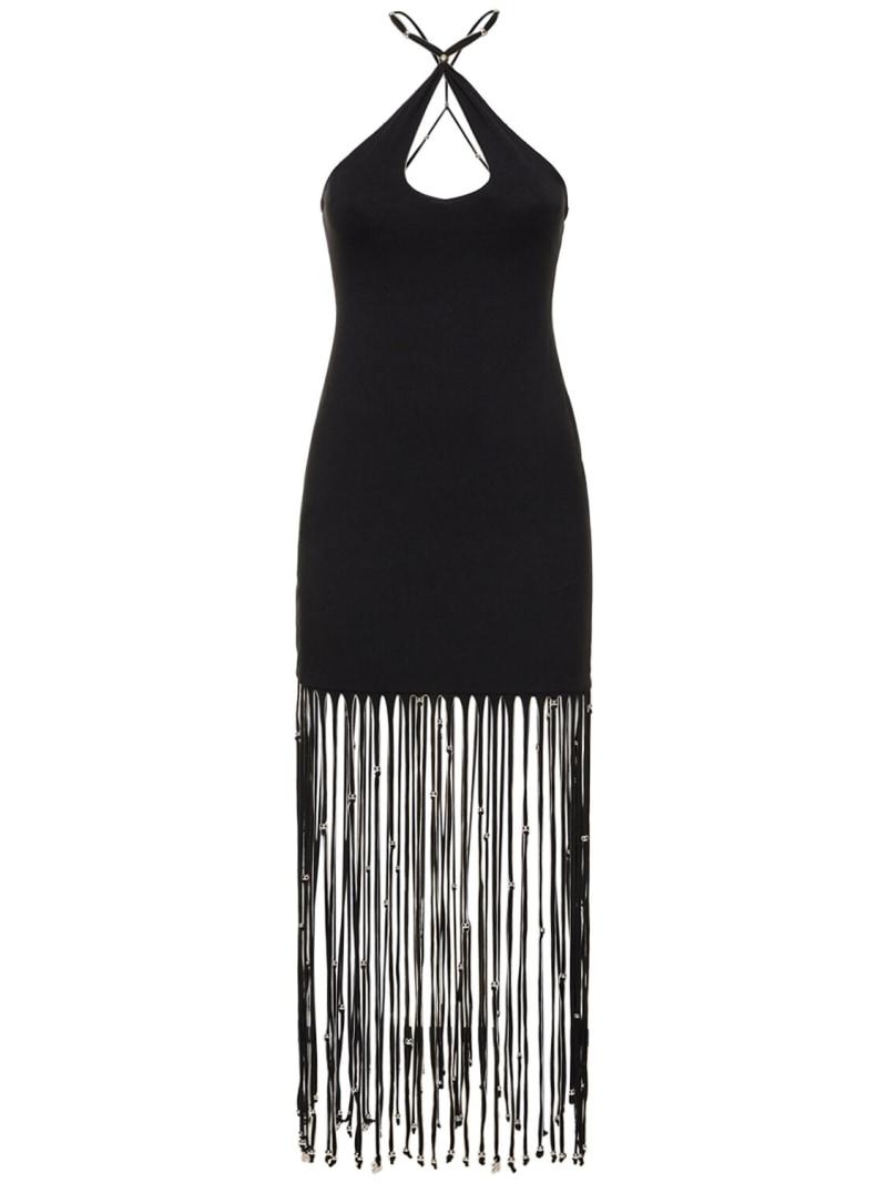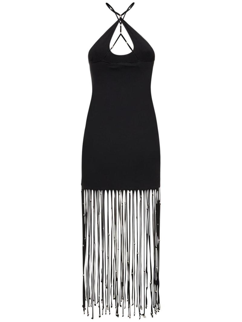 Elea流苏平纹针织超长连衣裙 - 黑色 - 女士 - Rotate - 可调节颈部系带.