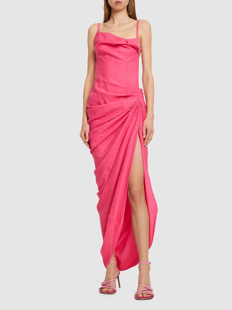 La Robe Saudade长款粘胶纤维混纺连衣裙 - 粉色 - 女士 - Jacquemus - 可调节细肩带.