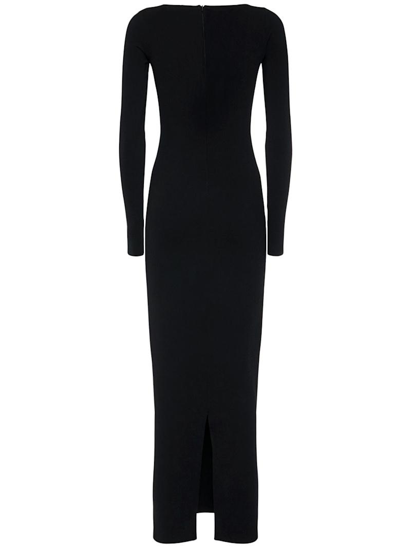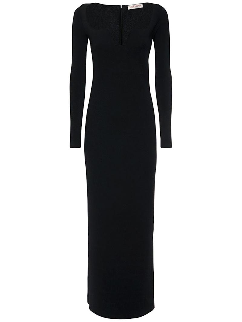 弹力粘胶纤维针织长款连衣裙 - 黑色 - 女士 - Valentino - 背面隐形拉链开合.
