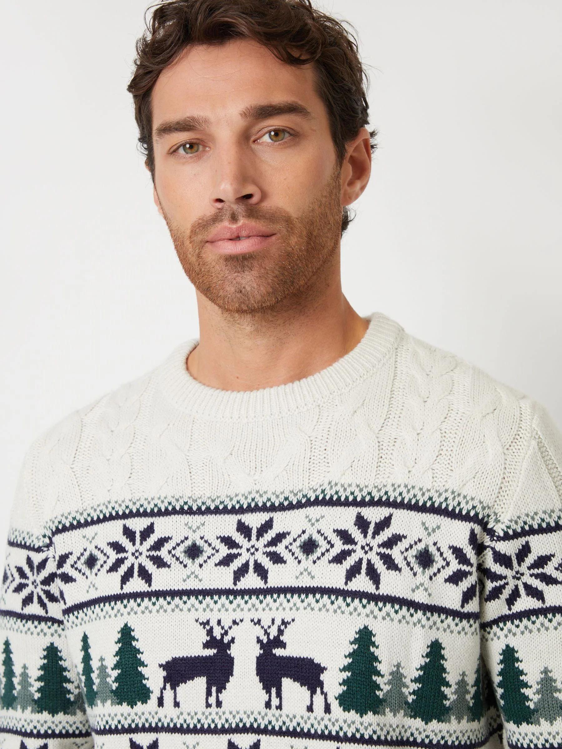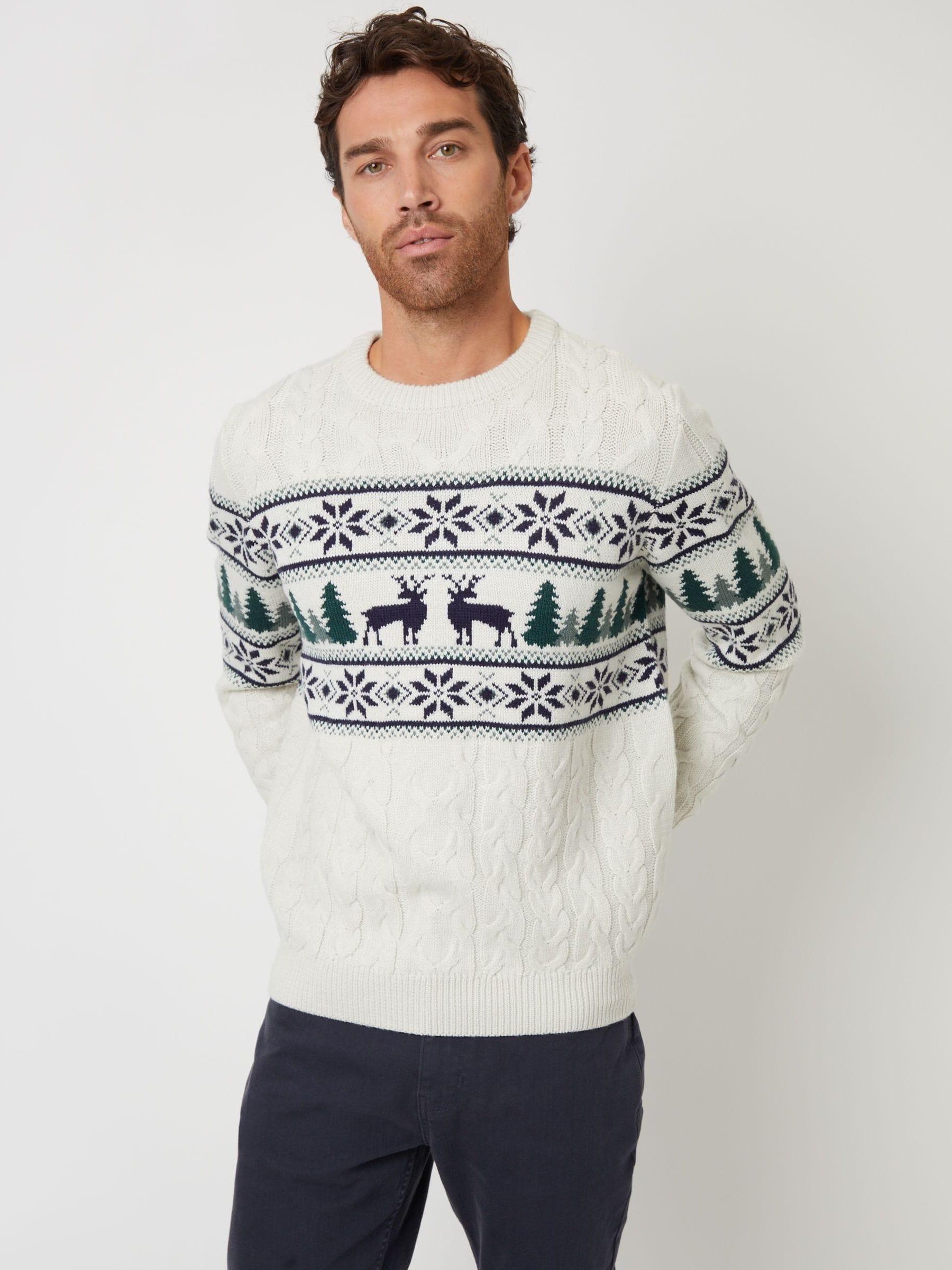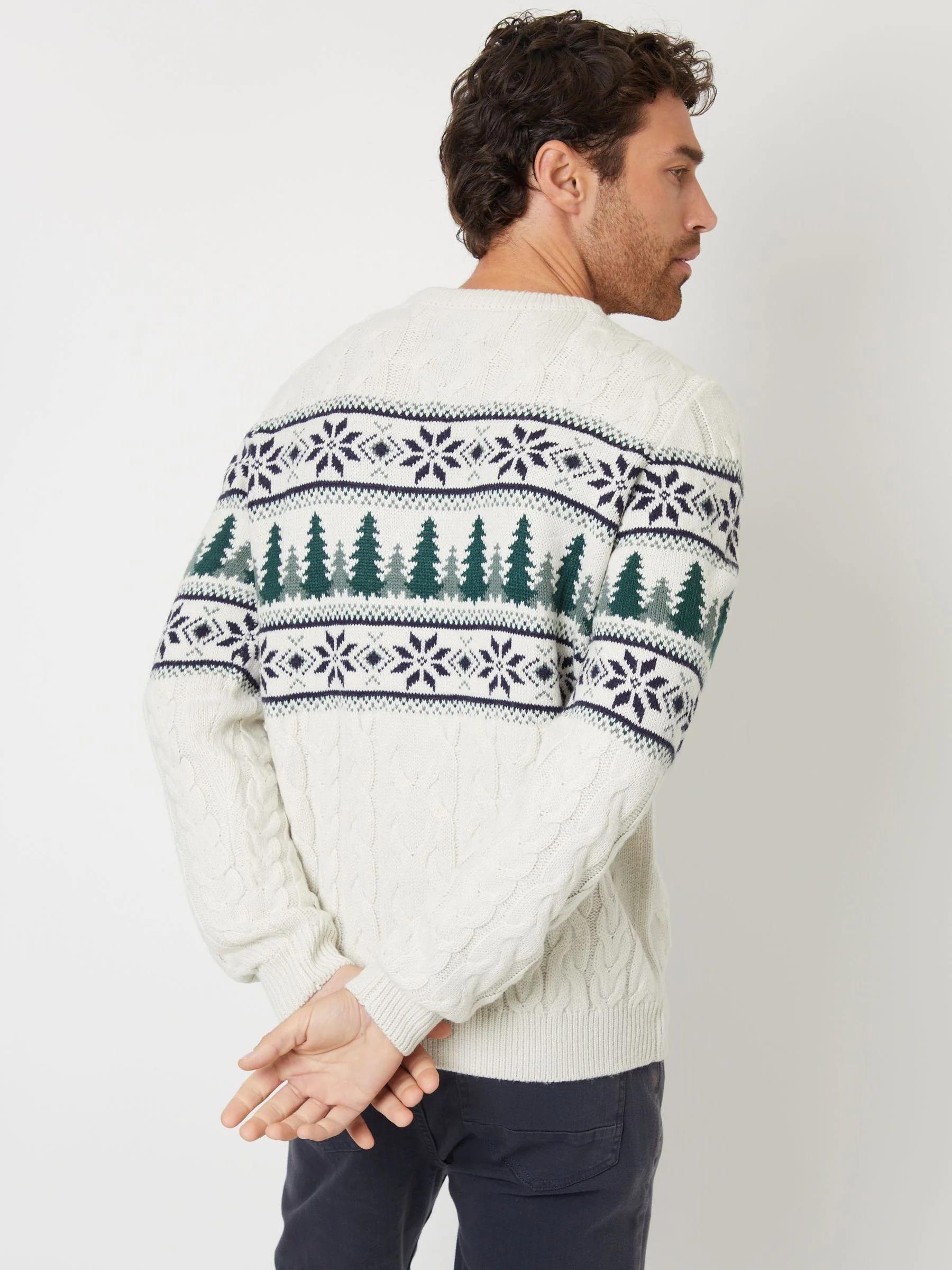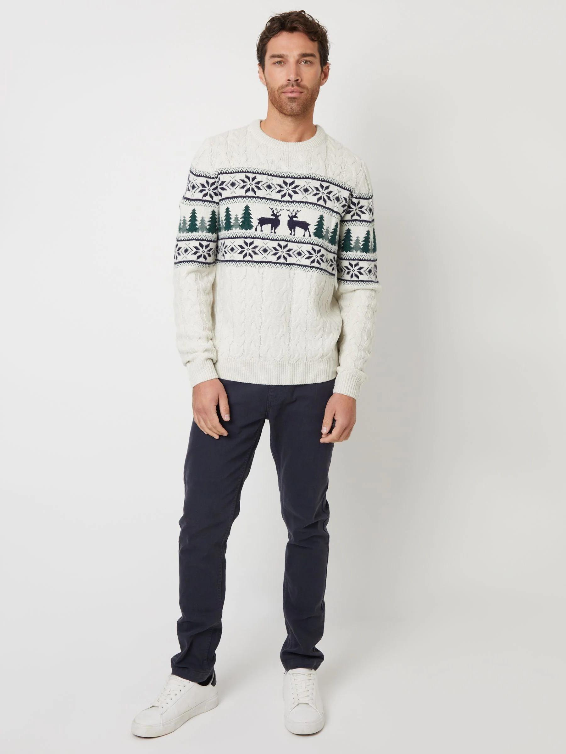 Threadbare Natural Cable Knit Christmas Fairisle Pattern Jumper