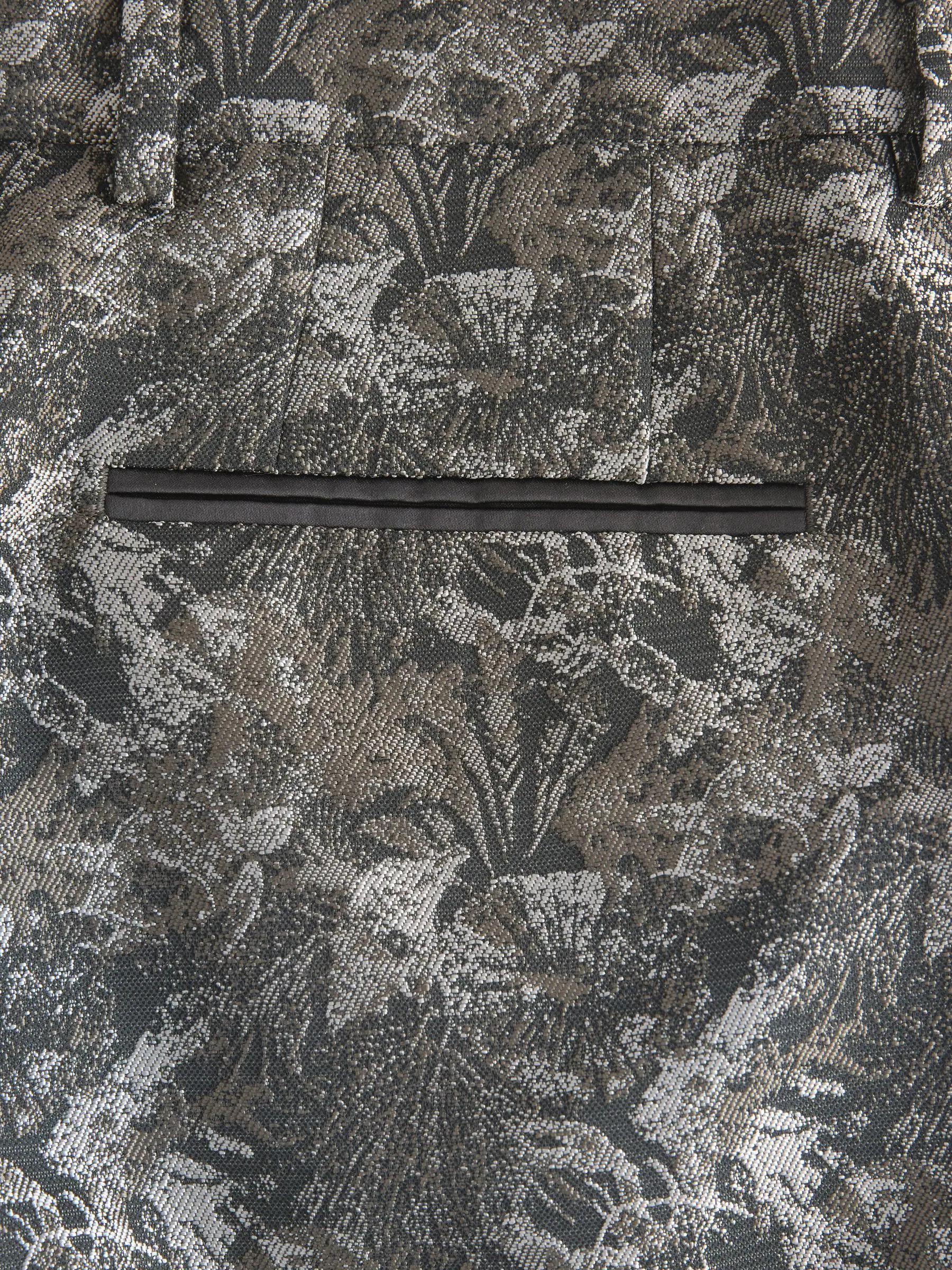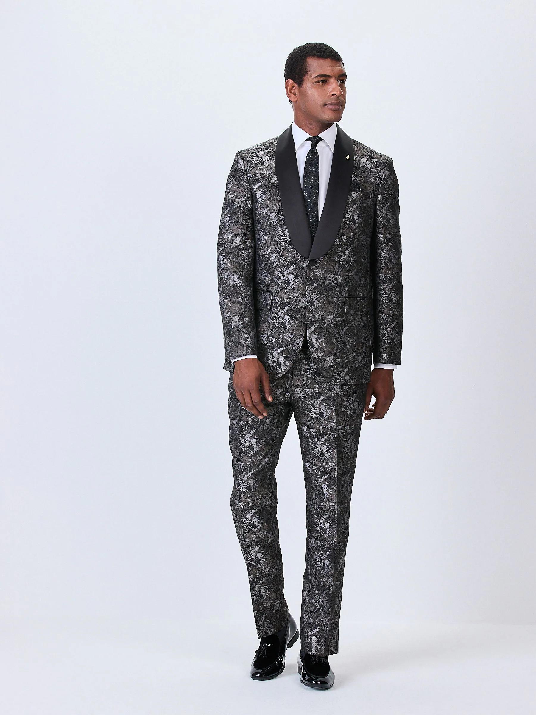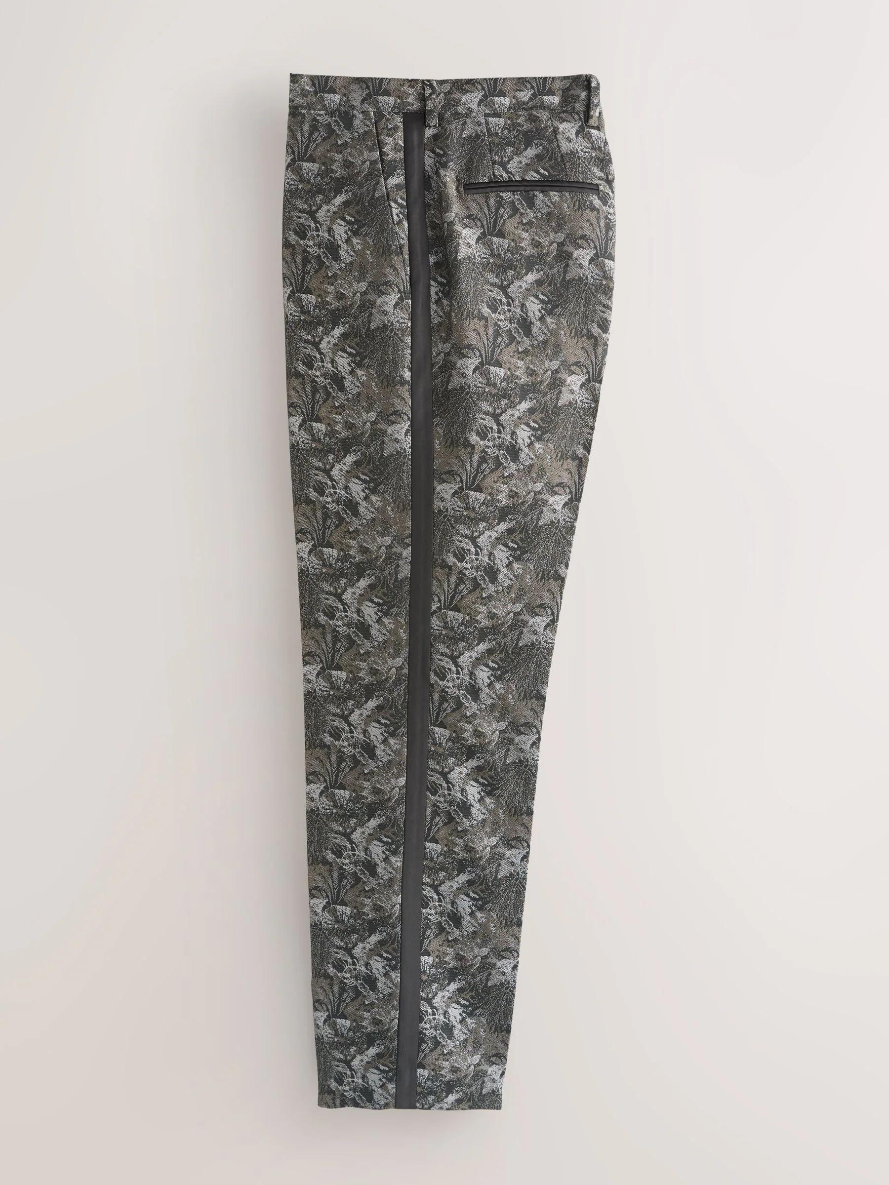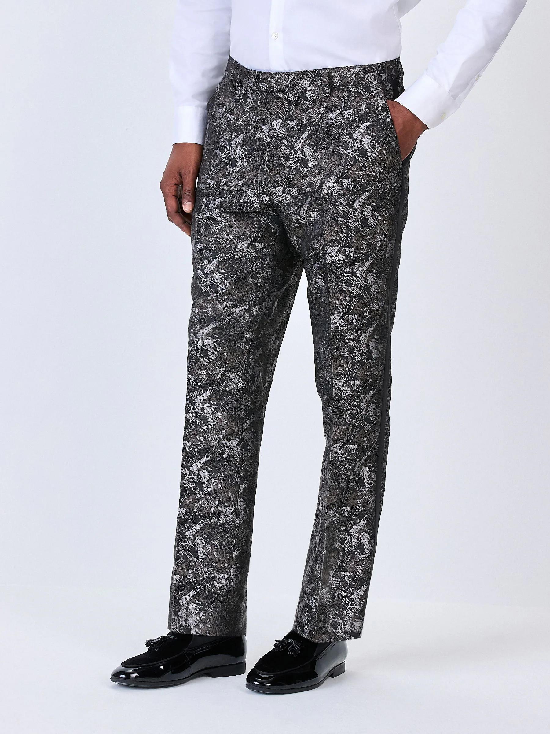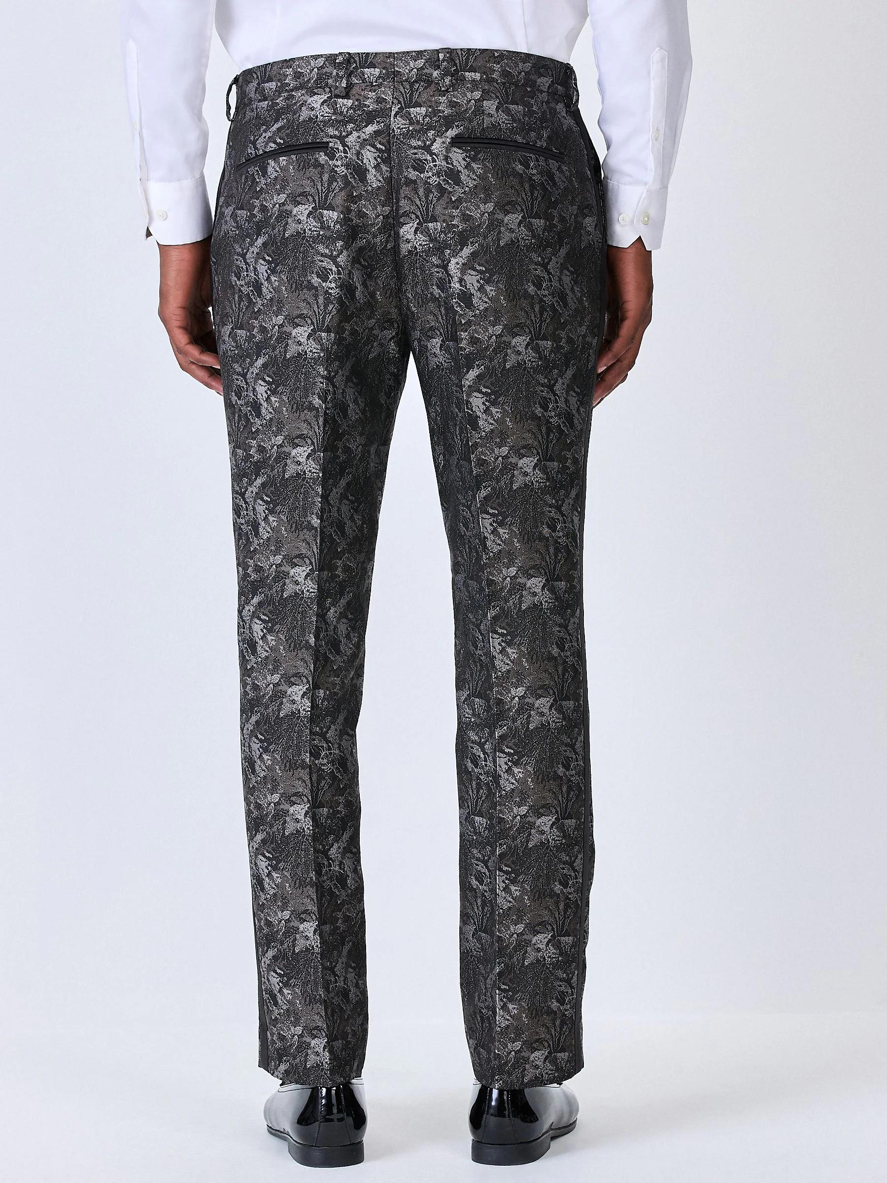Black Chrome Regular Fit Tapestry Design Suit Trousers