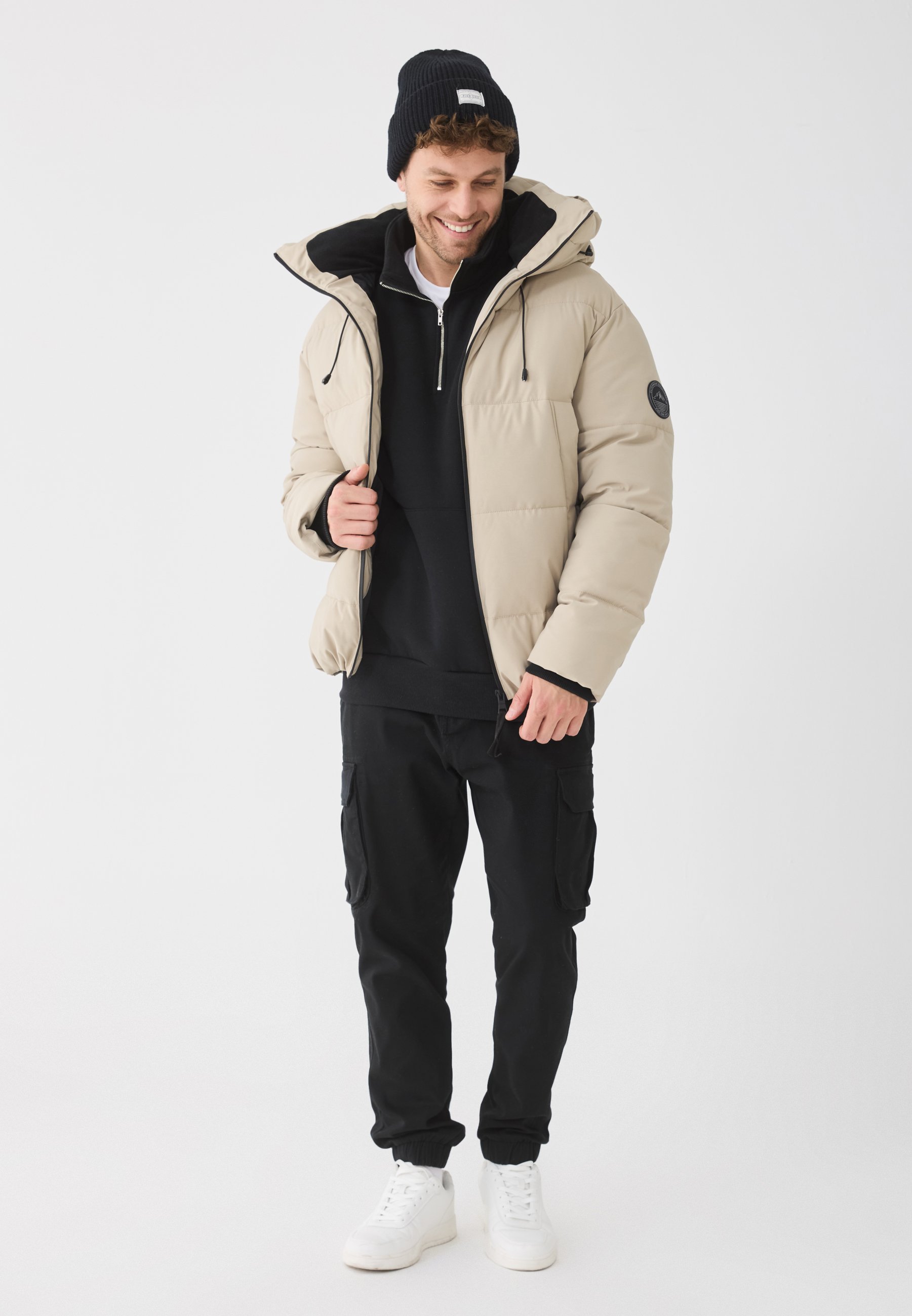 Collar: HoodFastening: ZipPockets: Inseam pocketsHood detail: Lined, drawstringPattern: Plain