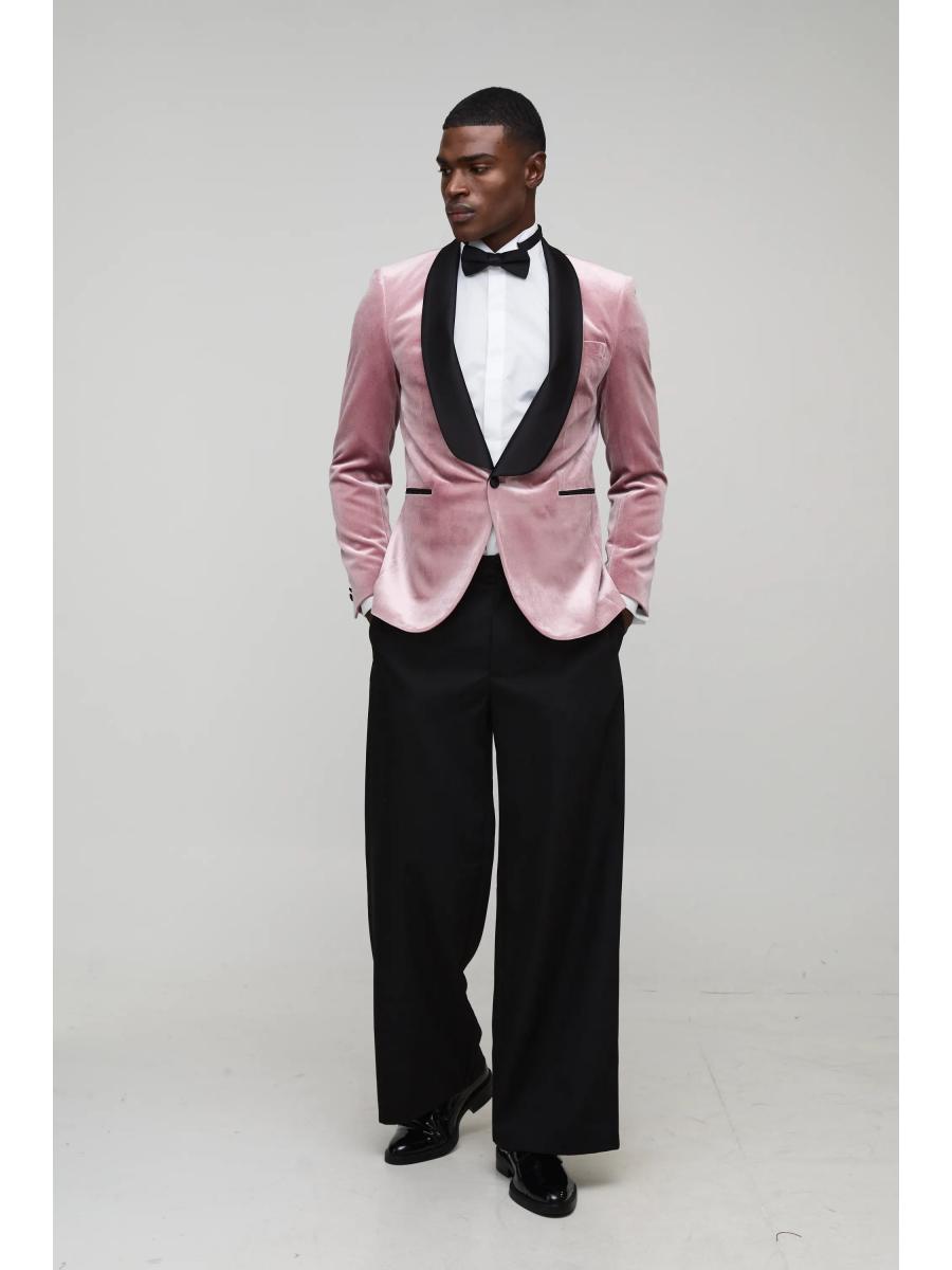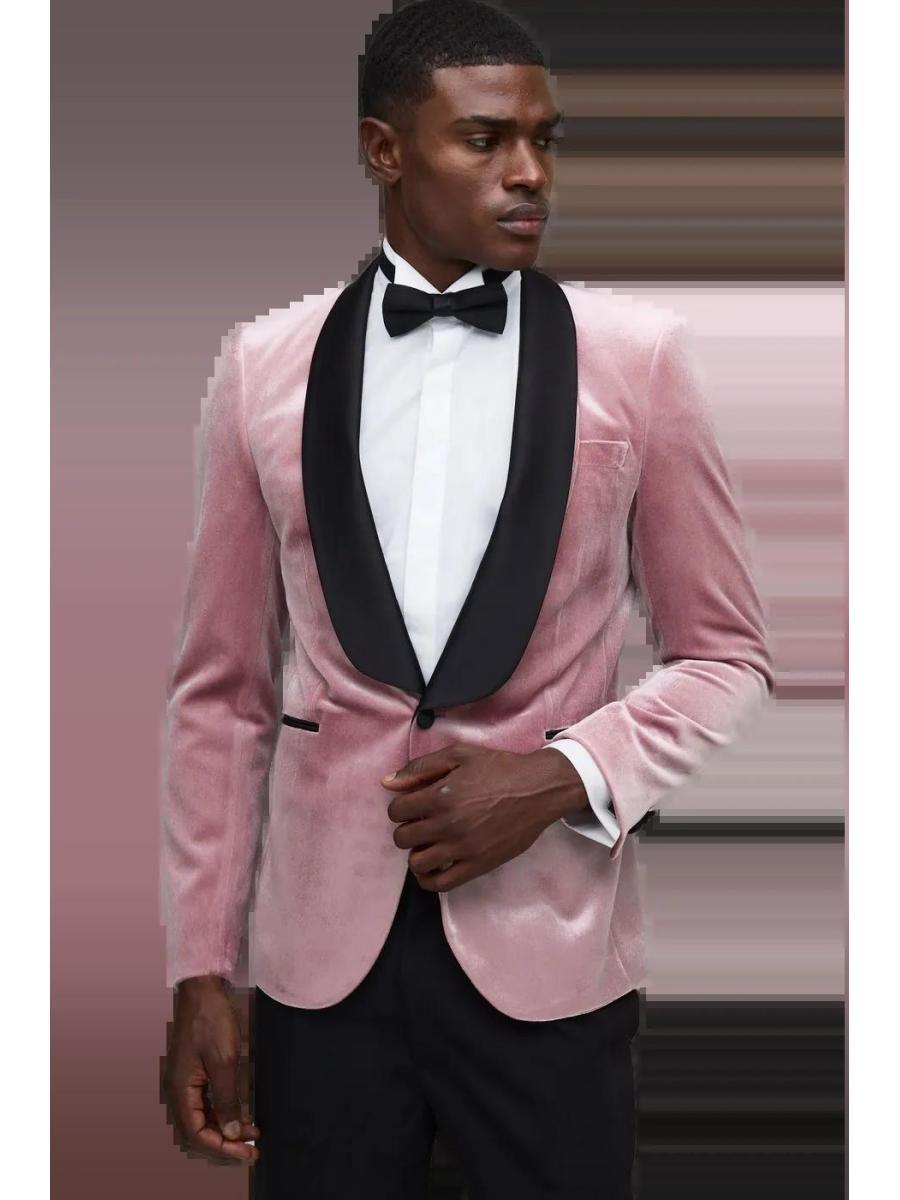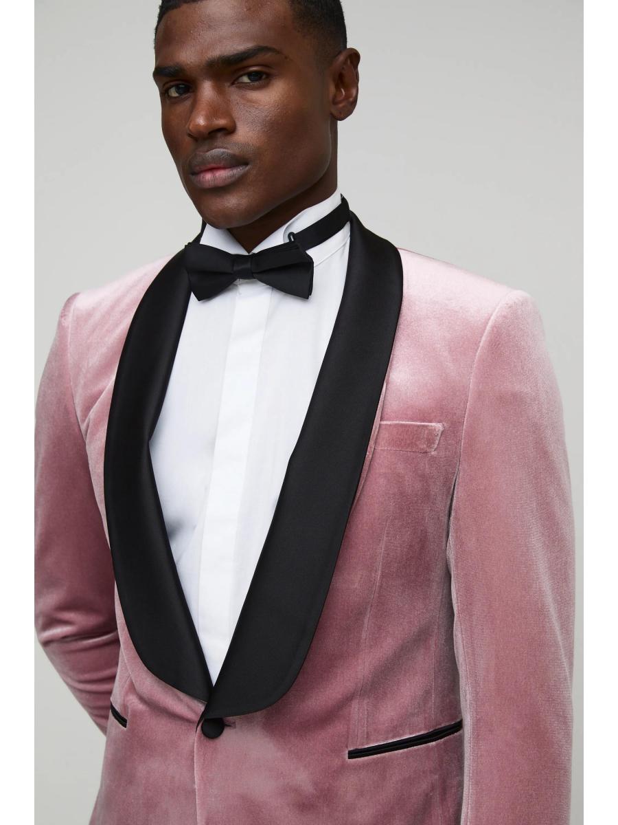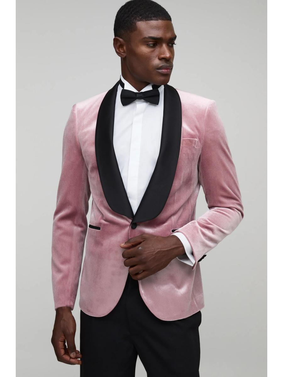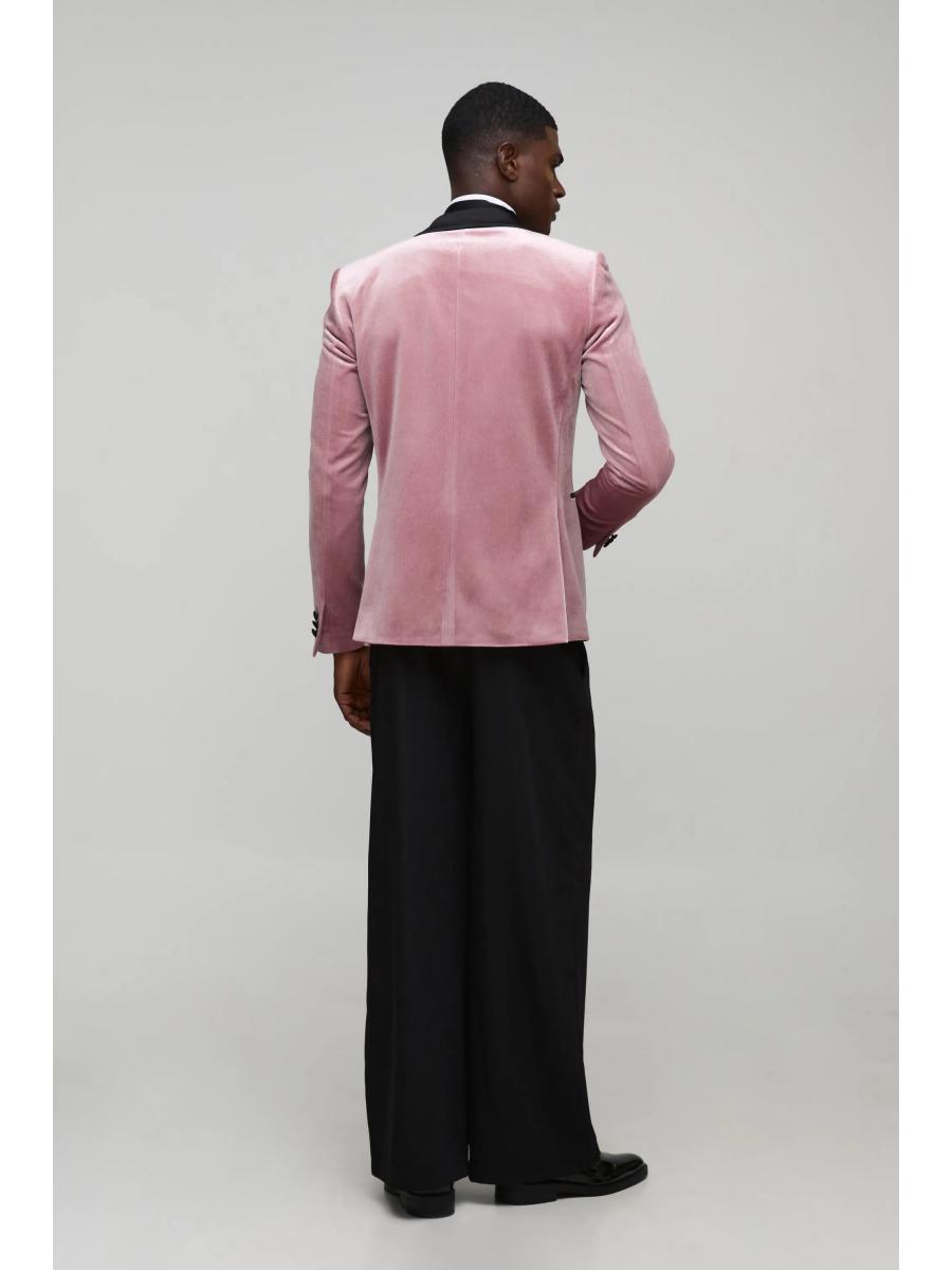 Pink Wide Lapel Velvet Tuxedo Jacket