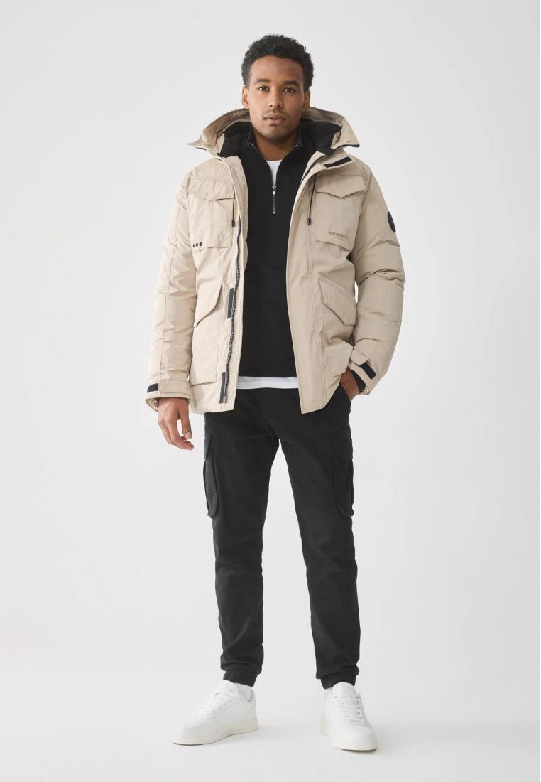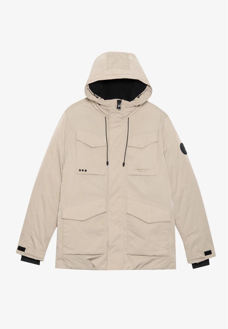 Collar: HoodFastening: ZipPockets: Flap pockets, chest pocketHood detail: DrawstringPattern: PlainDetails: Covered fastener