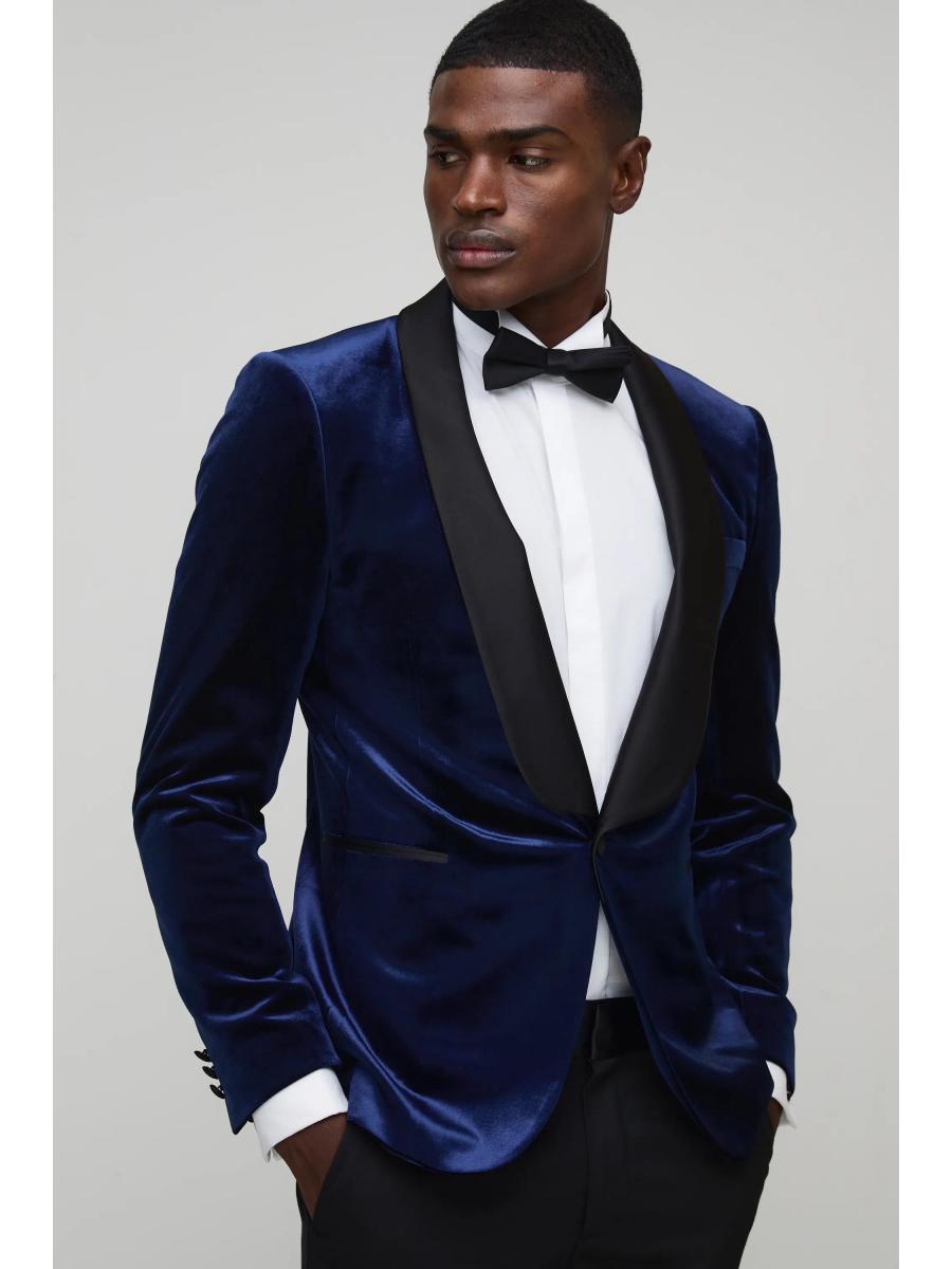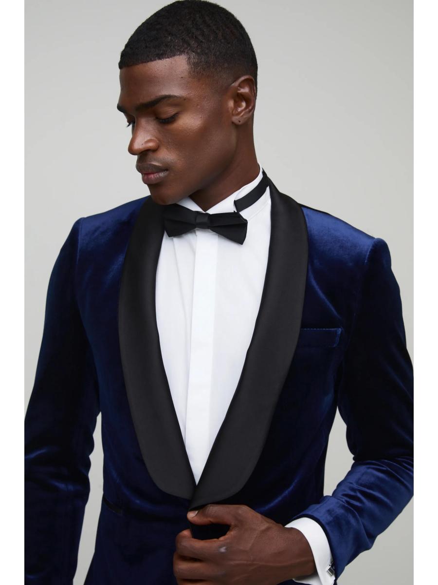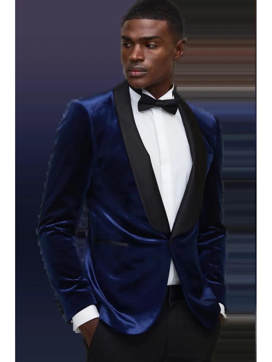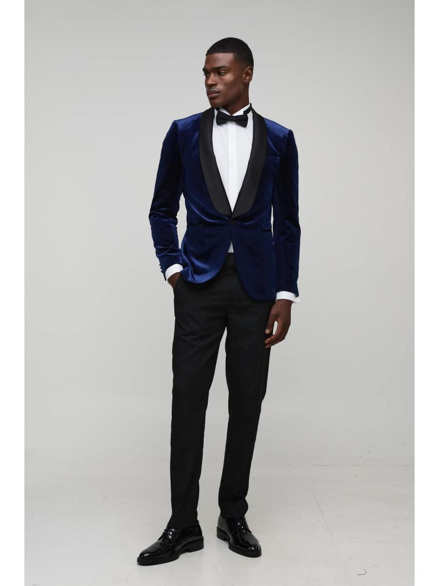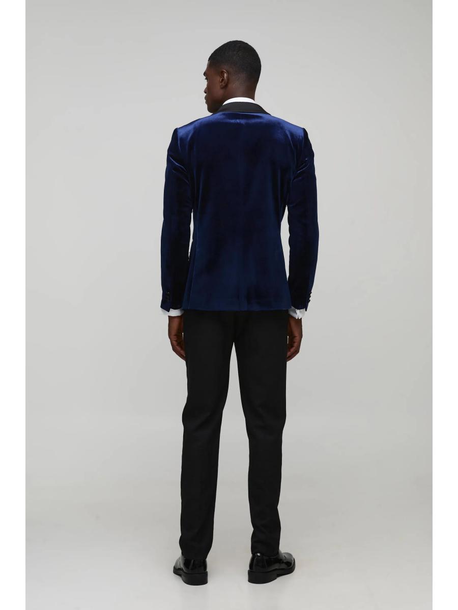 Regular Fit Navy Wide Lapel Velvet Tuxedo Jacket