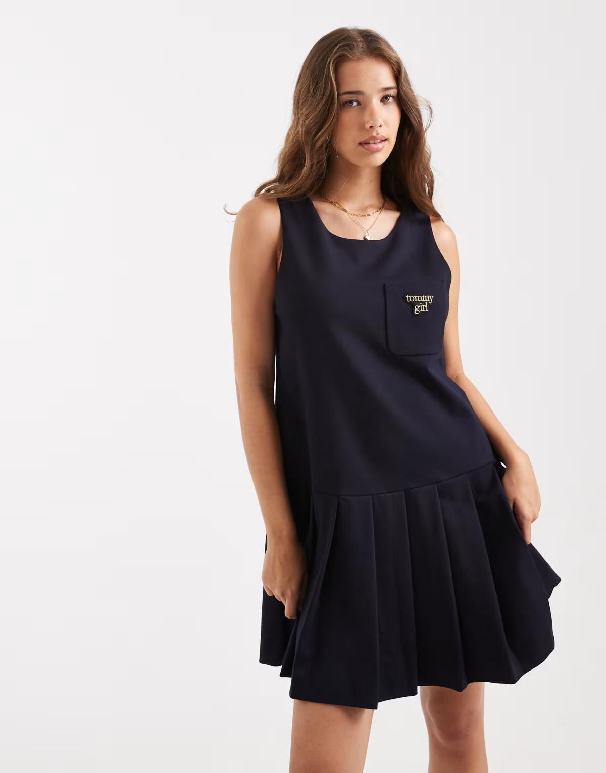 Tommy Jeans Tommy Girl scholar tailored shift dress in navy