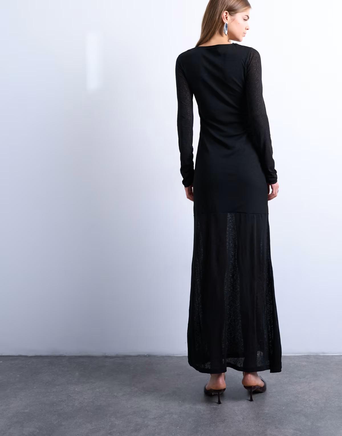Topshop ruched front drop waist maxi dress in black
