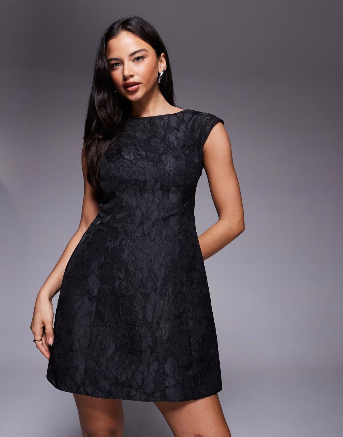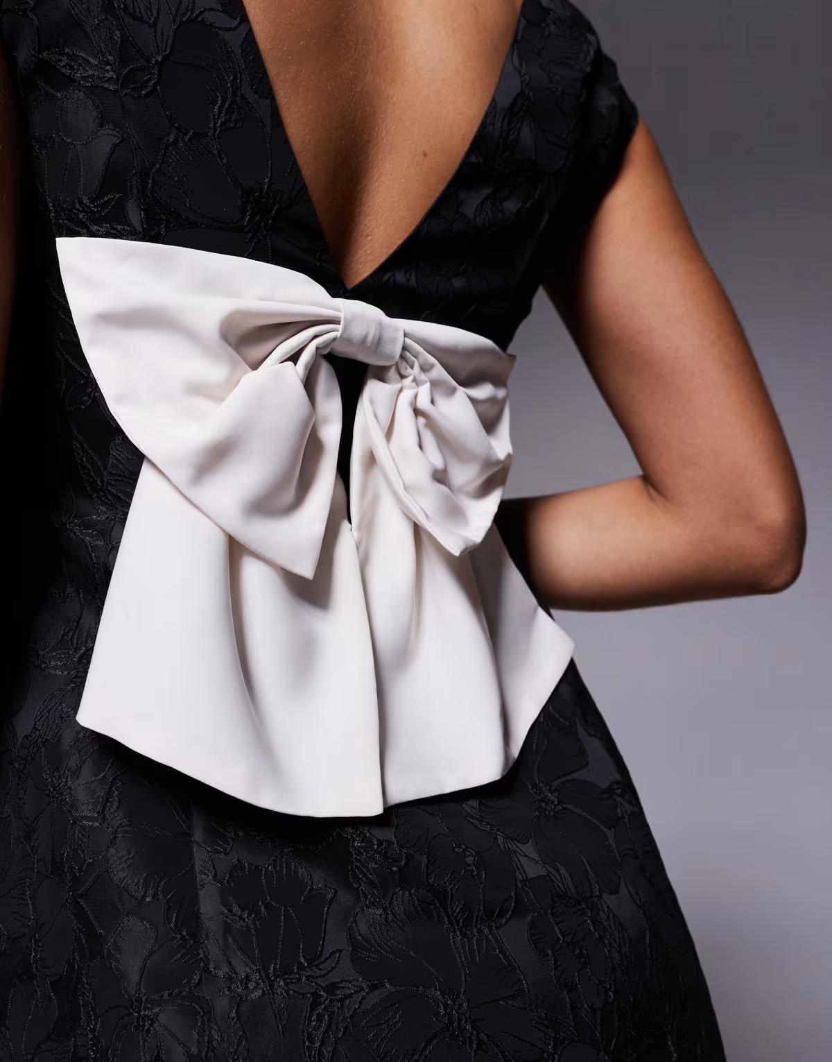 New Look jacquard bow skater mini dress in black
