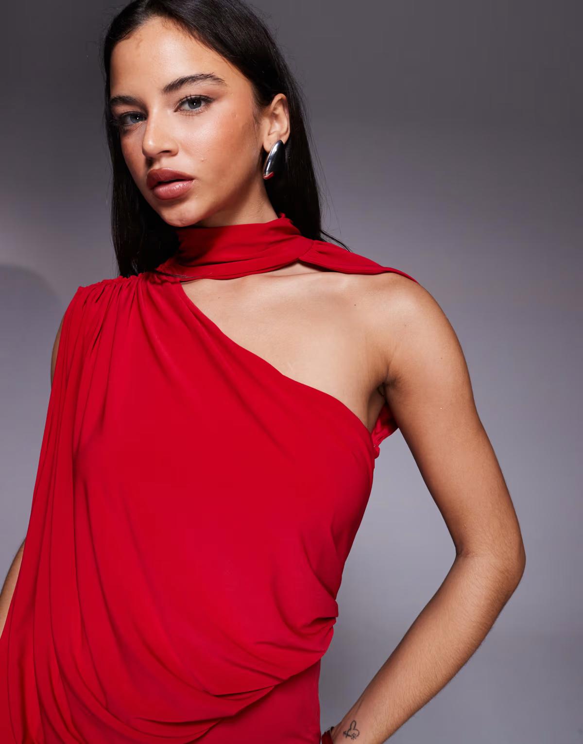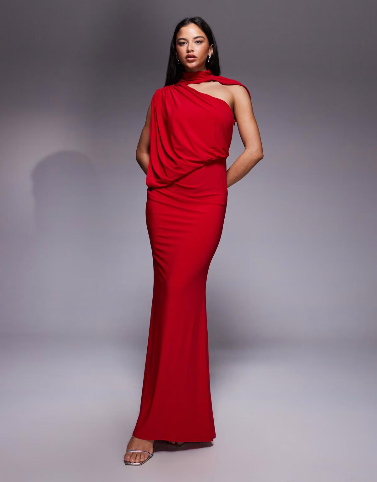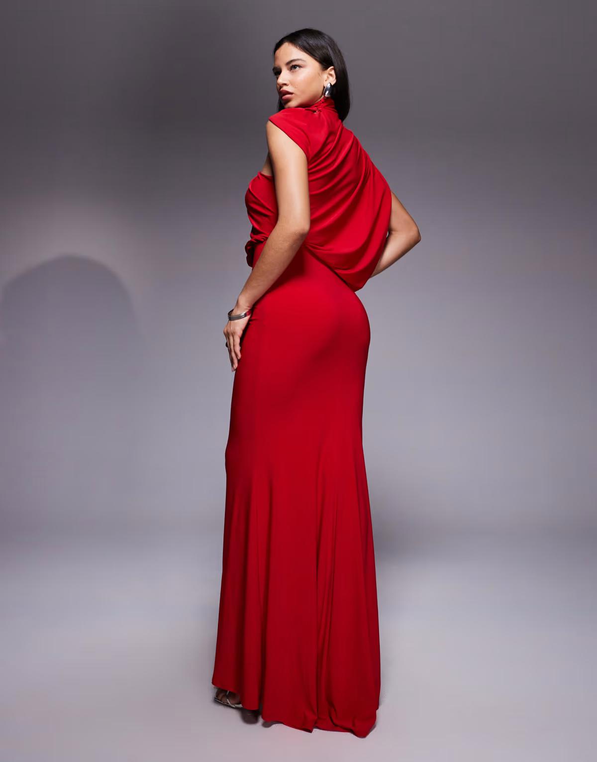 ASOS DESIGN one shoulder drape maxi dress with cape detail in red