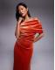 ASOS DESIGN Petite velvet midi dress with fallen shoulder in rust