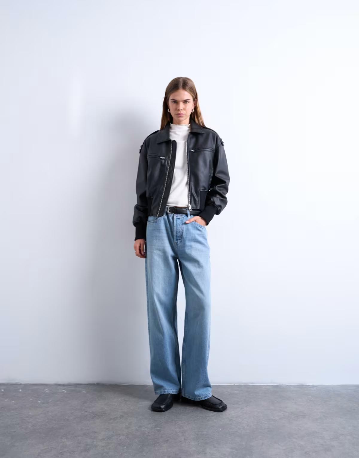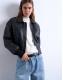 Topshop faux leather ovoid sleeve bomber jacket in washed black