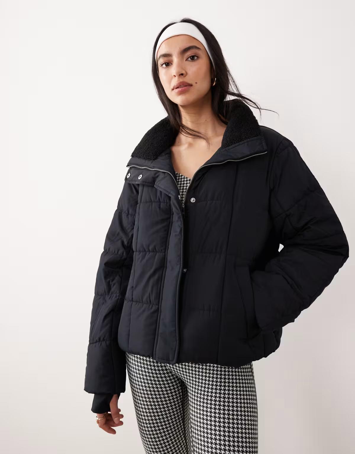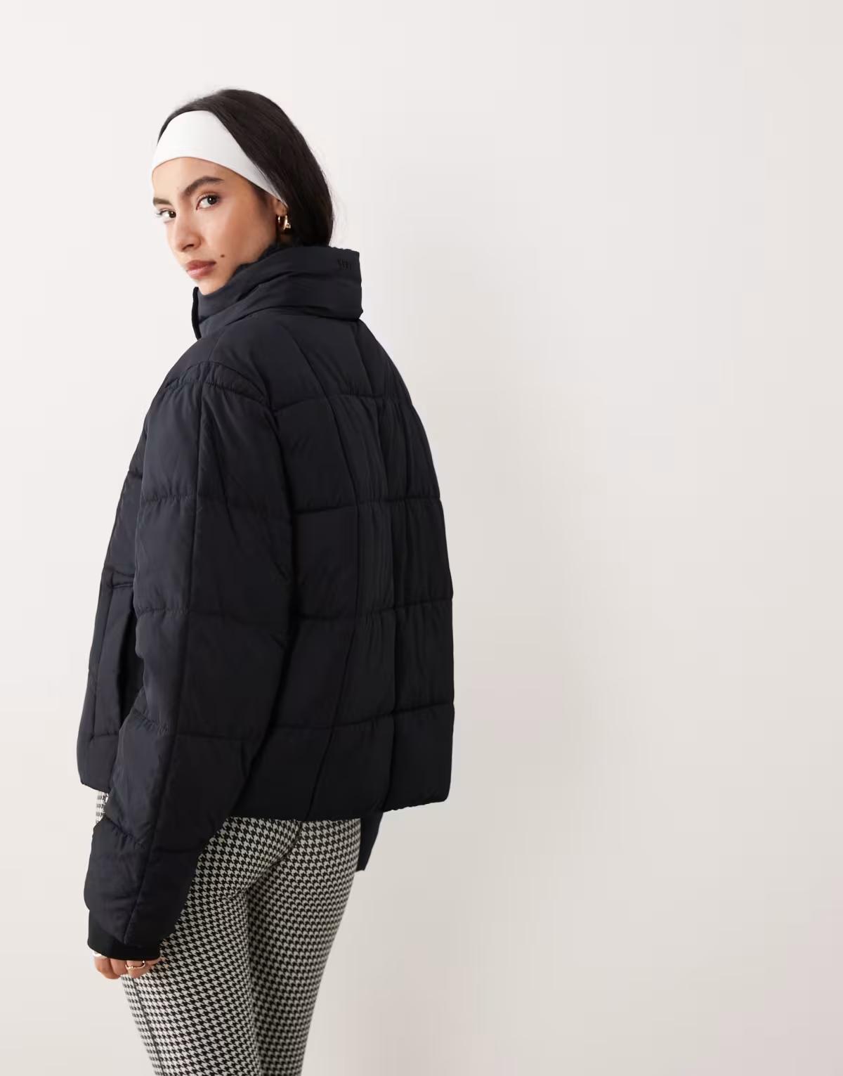 Abercrombie & Fitch YPB cropped high neck puffer jacket in black