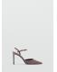 Efecto charol. Con punta. Tacón de aguja. Cierre de tira tobillera con hebilla metálica. El tacón mide 8,5 cm