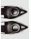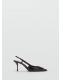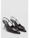 Diseño de charol. Diseño destalonado. Con punta. Anilla decorativa. Tacón de aguja. El tacón mide 8 cm