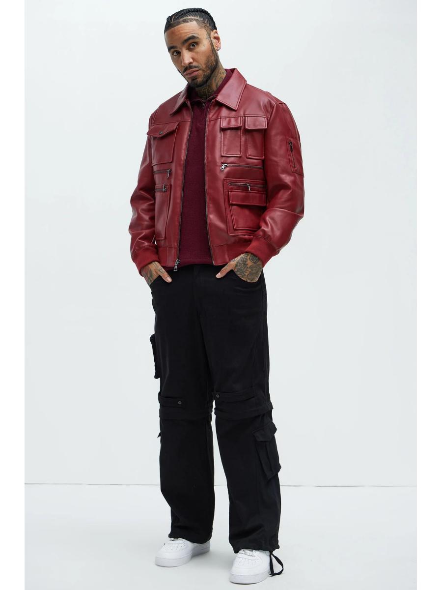 Austin Cargo Varsity Jacket - Burgundy | Fashion Nova