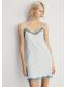 Camisón. Diseño corto. 100% Algodón. Detalle encaje. Tirantes finos. Cuello pico. Textura suave. La composición 100% algodón sugiere que es un tejido natural, transpirable y cómodo, ideal para ofrecer una sensación de frescura y confort durante el uso. Disponible en distintos colores