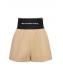 精裁棉&尼龙短裤 - 米黄色 - 女士 - Alexander Wang - Logo松紧腰头.