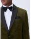 Olive Green Paisley Regular Fit Patterned Velvet Blazer