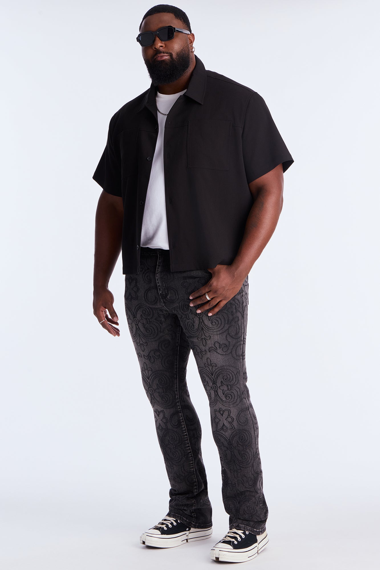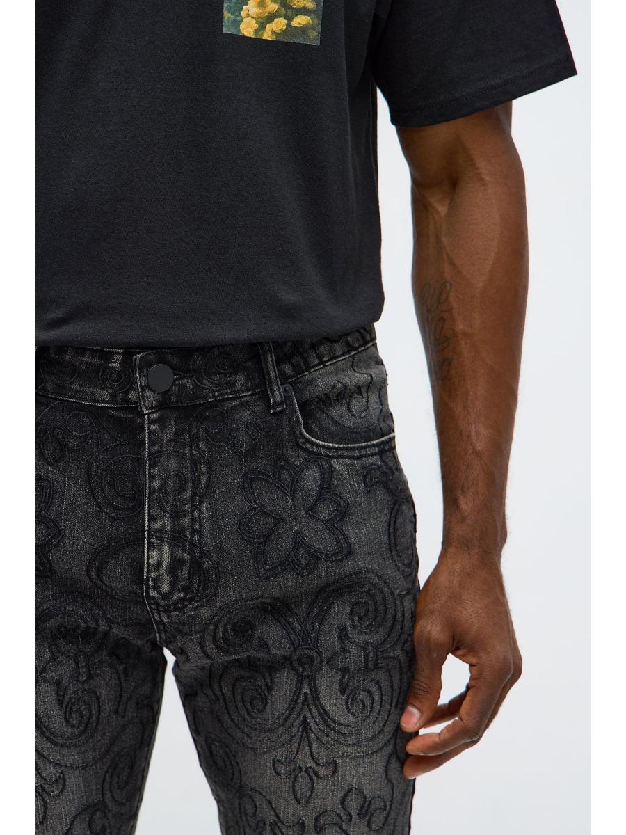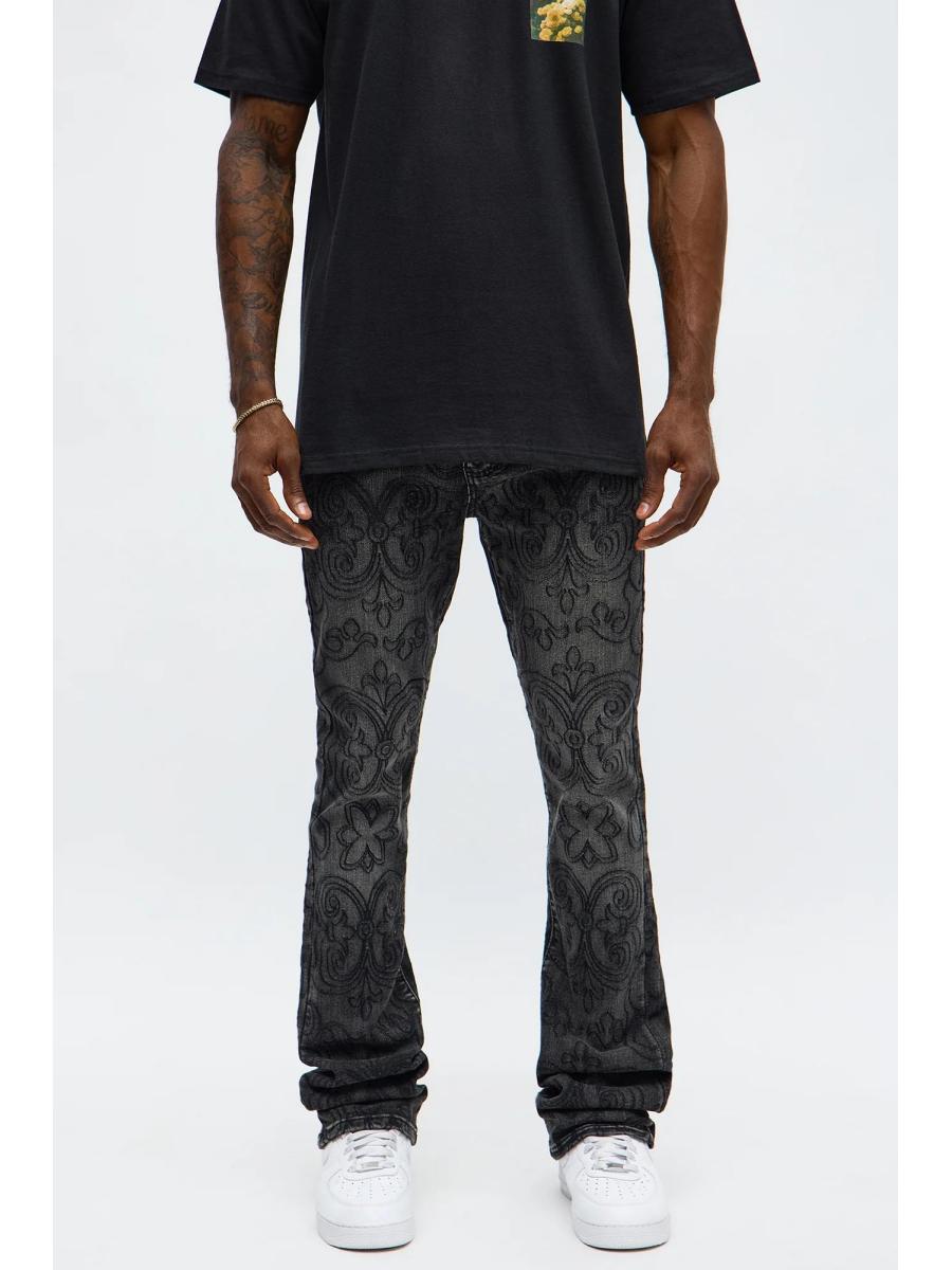 Stacked Skinny Flare Mystic Embroidered Jean - Black Wash | Fashion Nova