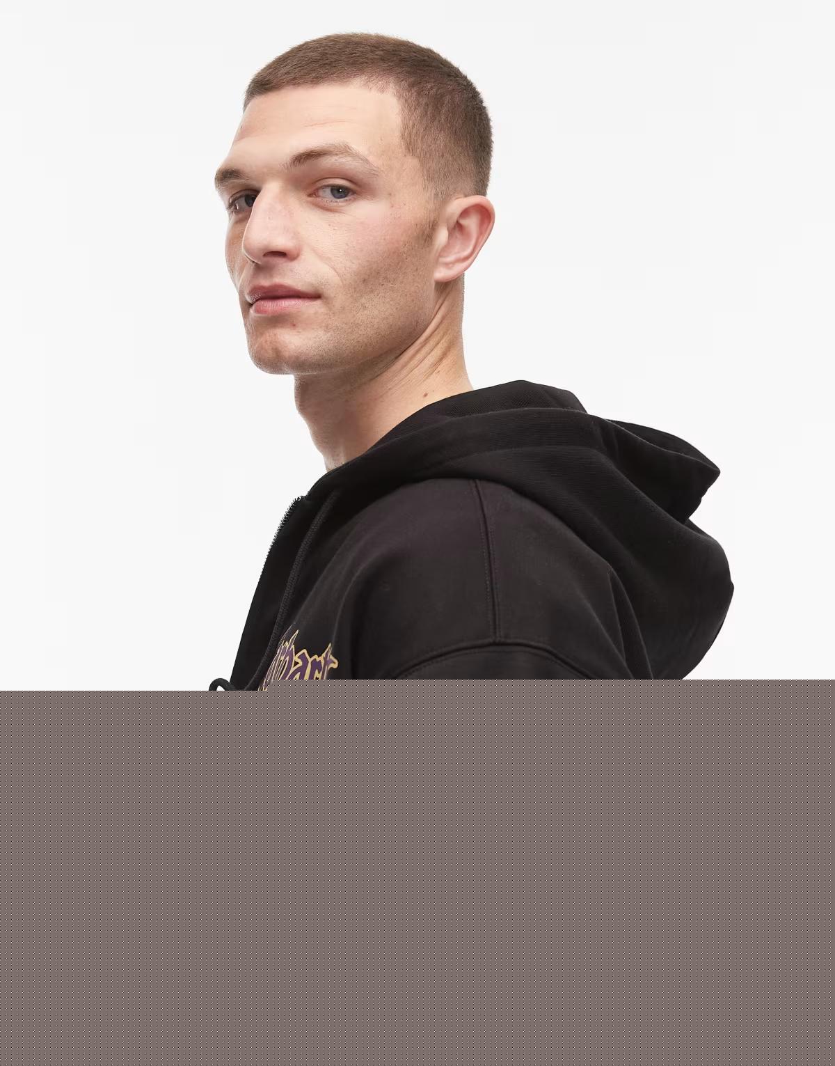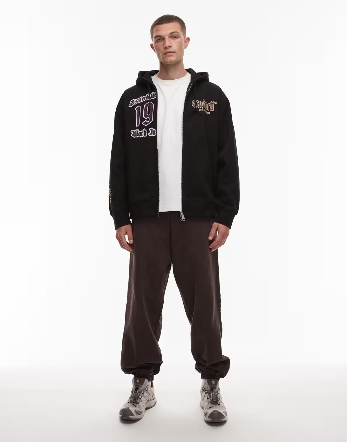 Carhartt WIP branding and text embroidery on front and sleeve