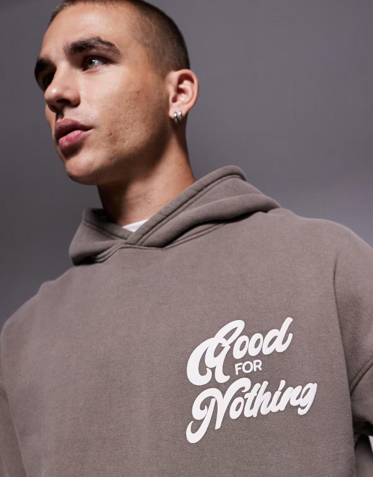 BrandStreetwear label Good For Nothing confronts the status quo with its collection of contrasts. Established in 2011, it challenges construction with tees and sweats in cut and sew designs and high definition prints. The brand’s butterfly logo also symbolises growth and strength.Size & FitModel's height: 180cm/5'11"Still unsure what size to get? Check out our size guide.